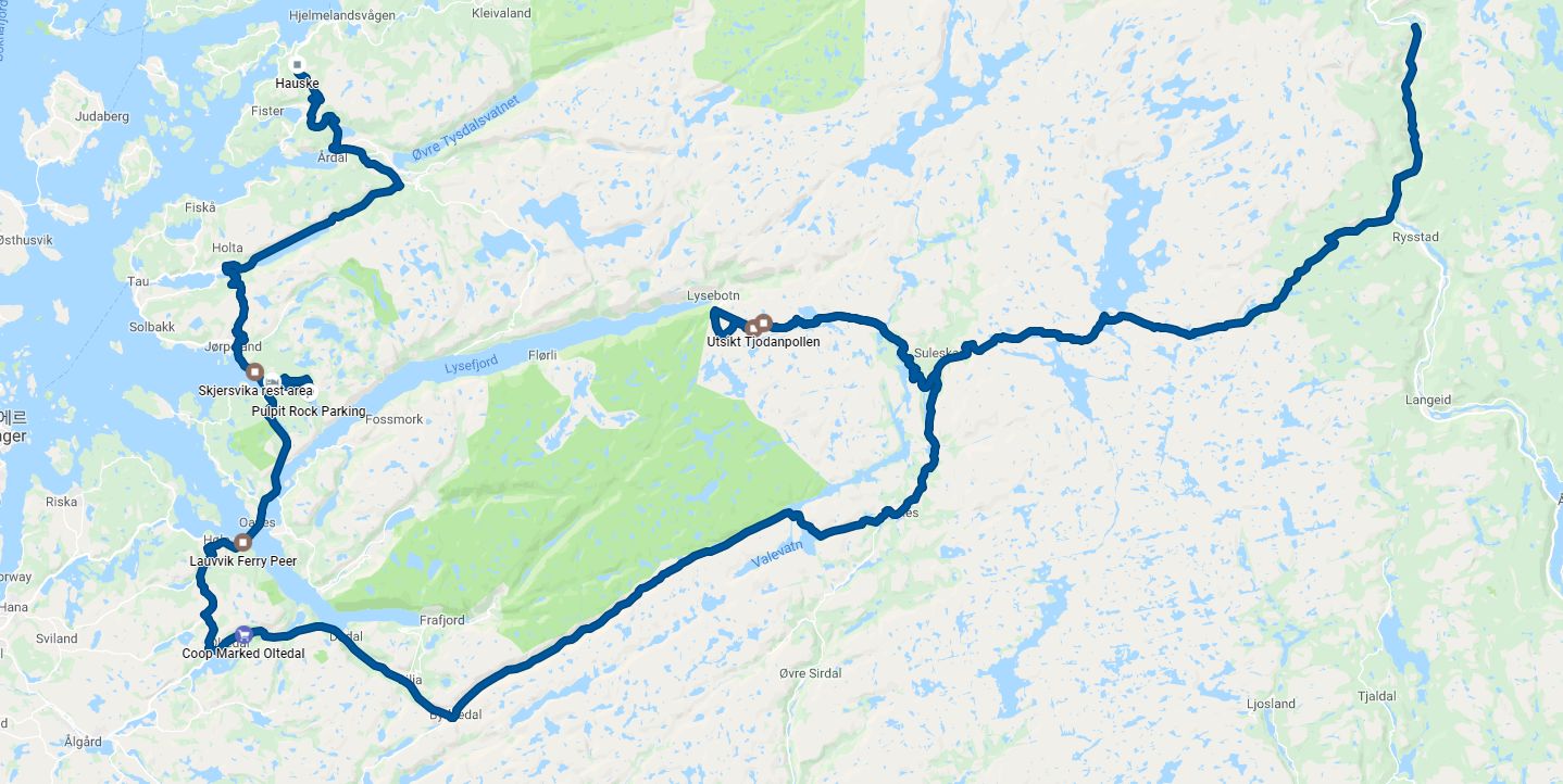 Kjeragbolte주차장 - Lauvvik/Oanes🚢 - Preikestolen🥾- 13번 국도변 피크닉장😴
