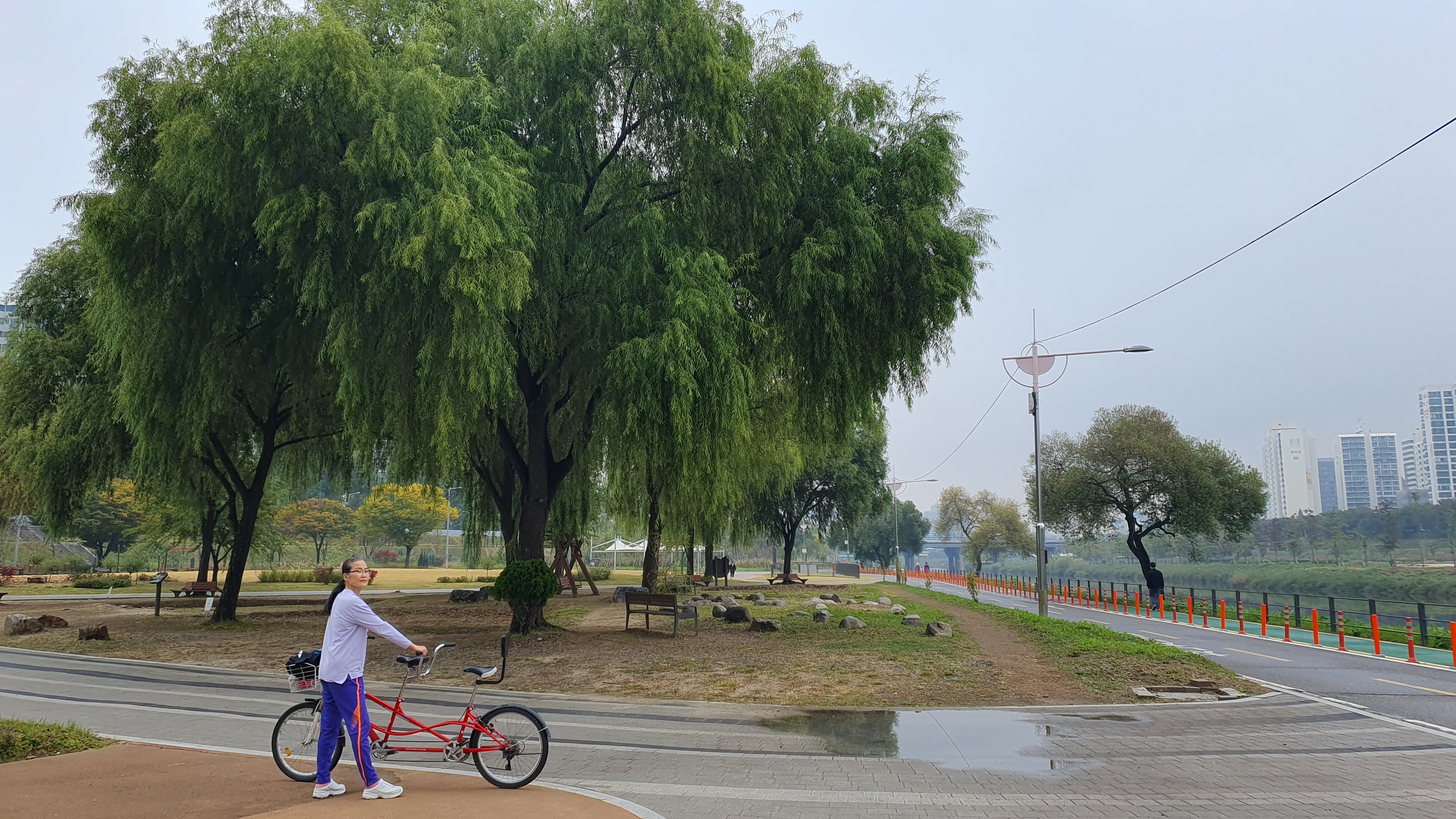 봉림교 교통섬 자전거 대여소에서 텐덤 자전거를 무료로 빌려서 출발했다 도림천은 하류로 가면서 안양천과 만나서 한강으로 간다. 자전거 상태가 매우 좋다. 도림천 구간은 고가차도의 아래로 다니는 구간과 터널이 많고 하천폭이 좁고 물이 지저분해 글쎄? 라는 말이 저절로 나오는 구간이지만 목동에서 안양천과 만나는 구간에 오니 신세계다. 너르게 펼쳐진 수변공원에 멋진 숲들. 이런 곳이 있기에 뉴욕의 센트럴 파크같은 공원이 불필요해! 라는 말이 나오게 된다. 드넓기만 한 한강보다 훨씬 잘 조성되어 있는 수변 공간에 감탄이 나왔다. 자전거 라이딩은 역시 한강보다 안양천이다.