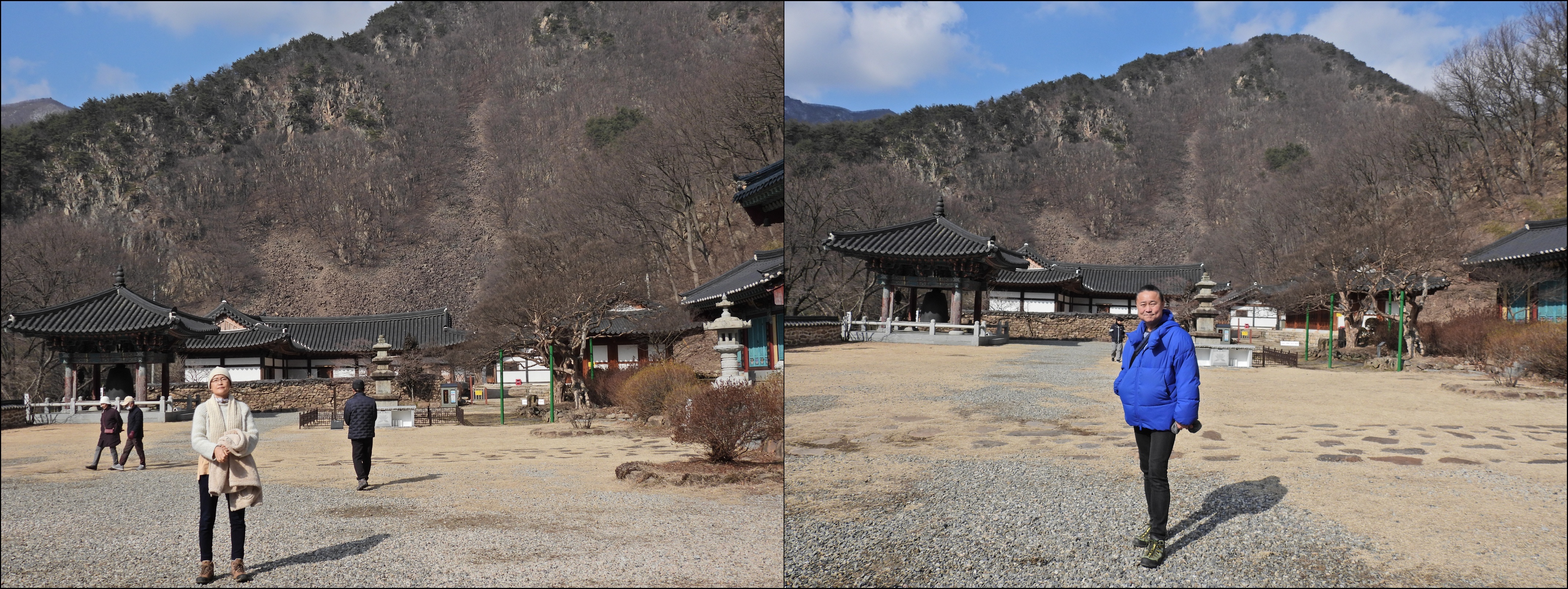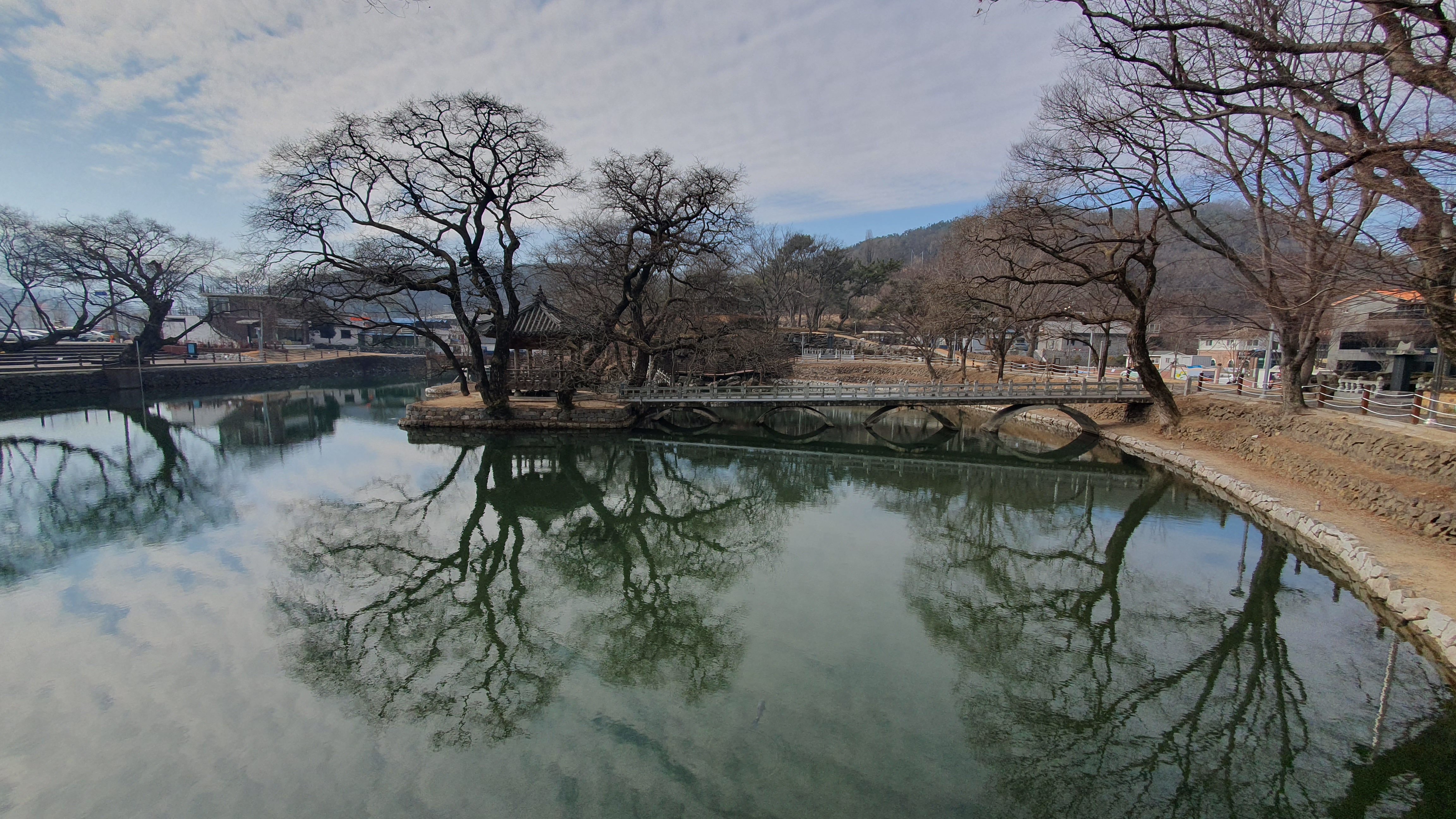 월류봉 둘레길이 시작되는 월류정에 왔다.주차장은 차들로 만차다. 월류봉 가는 등산로는 징검다리가 눈과 얼음으로 덮여 있어 위험했다. 월류봉 둘레길 여울소리길을 걸었다. 2.5kg 구간 중 1.8kg 정도 걷다가 돌아왔다. 걷기에 좋은 길이긴 했지만 약간 지루하다.