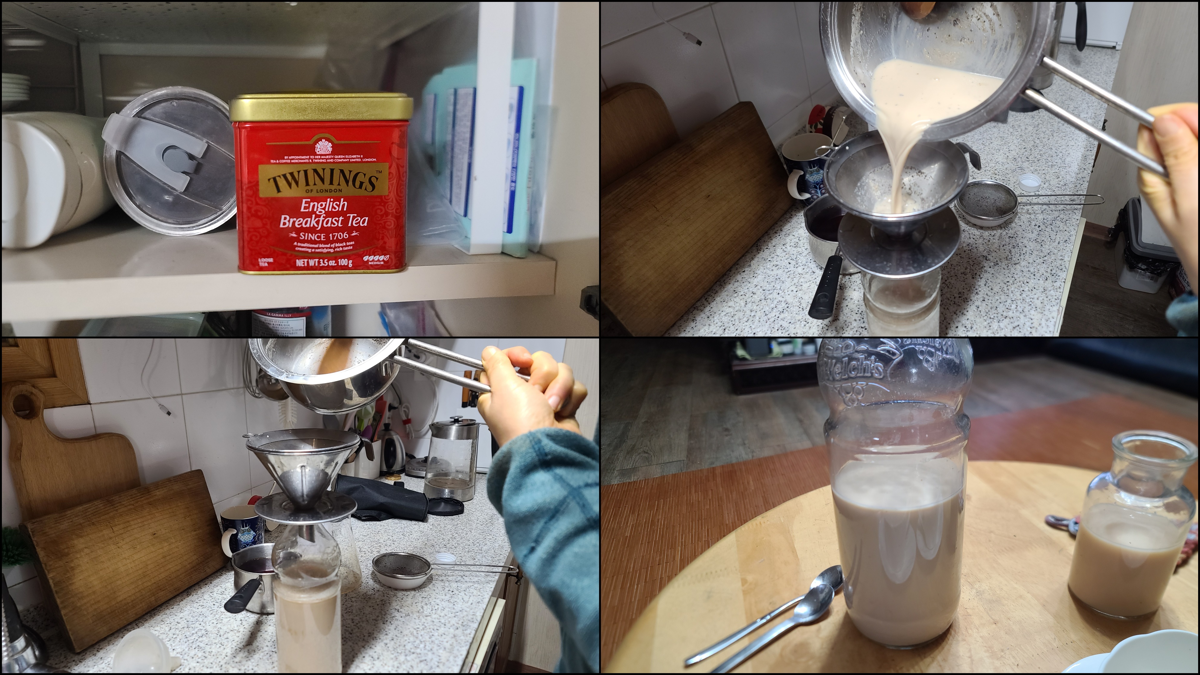 3. 스텐드리퍼로 내려 베이스 400g 정도. 우유는 2.5배 정도 넣었다. 1.5리터 밀크티. 맛있다. 향은 약간 부족.