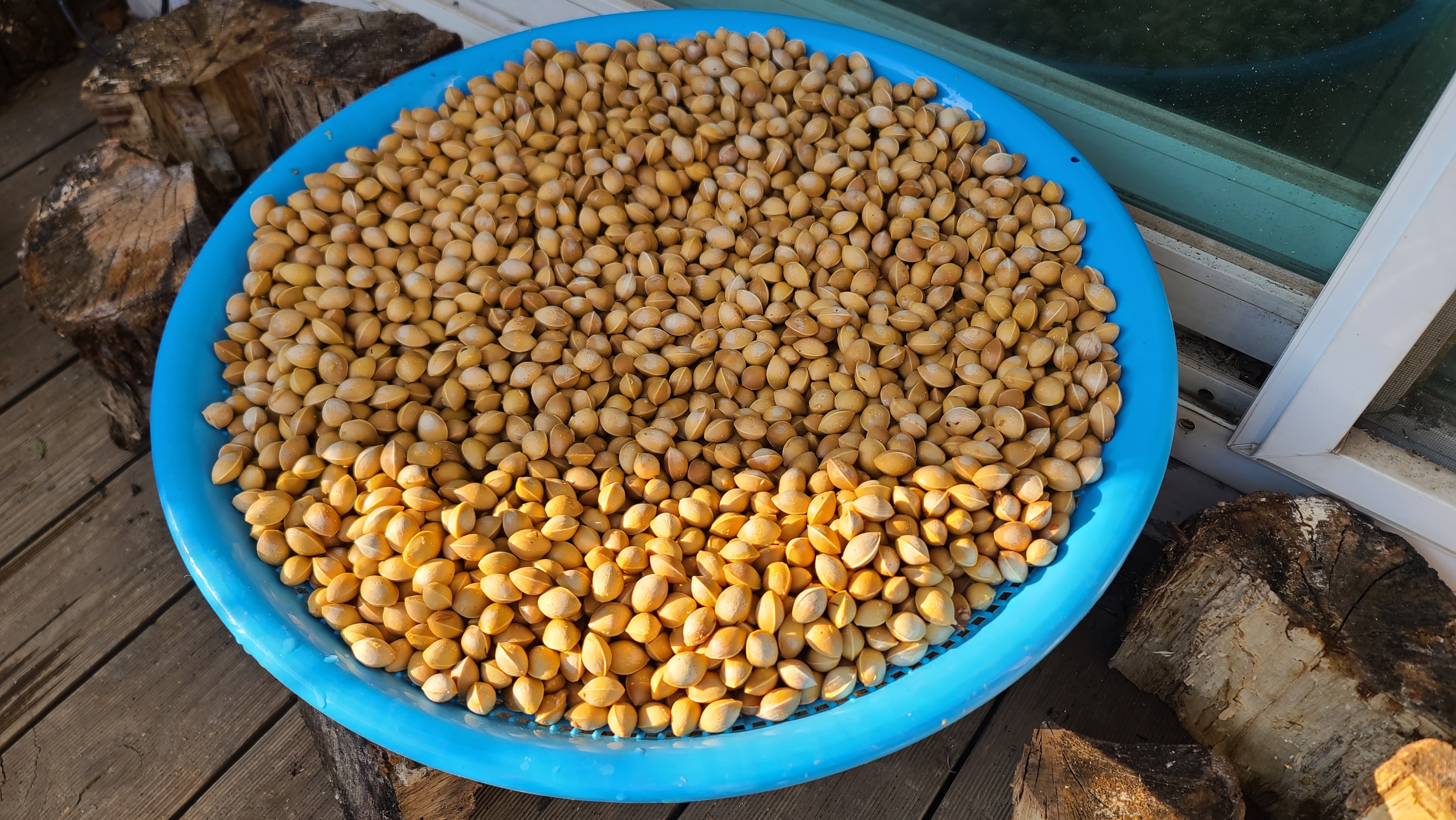 3/2 은행까기 시작. 은행을 1차 익혀 탈피후 보관하는 작업. 말린 은행 총량은 5.5kg.