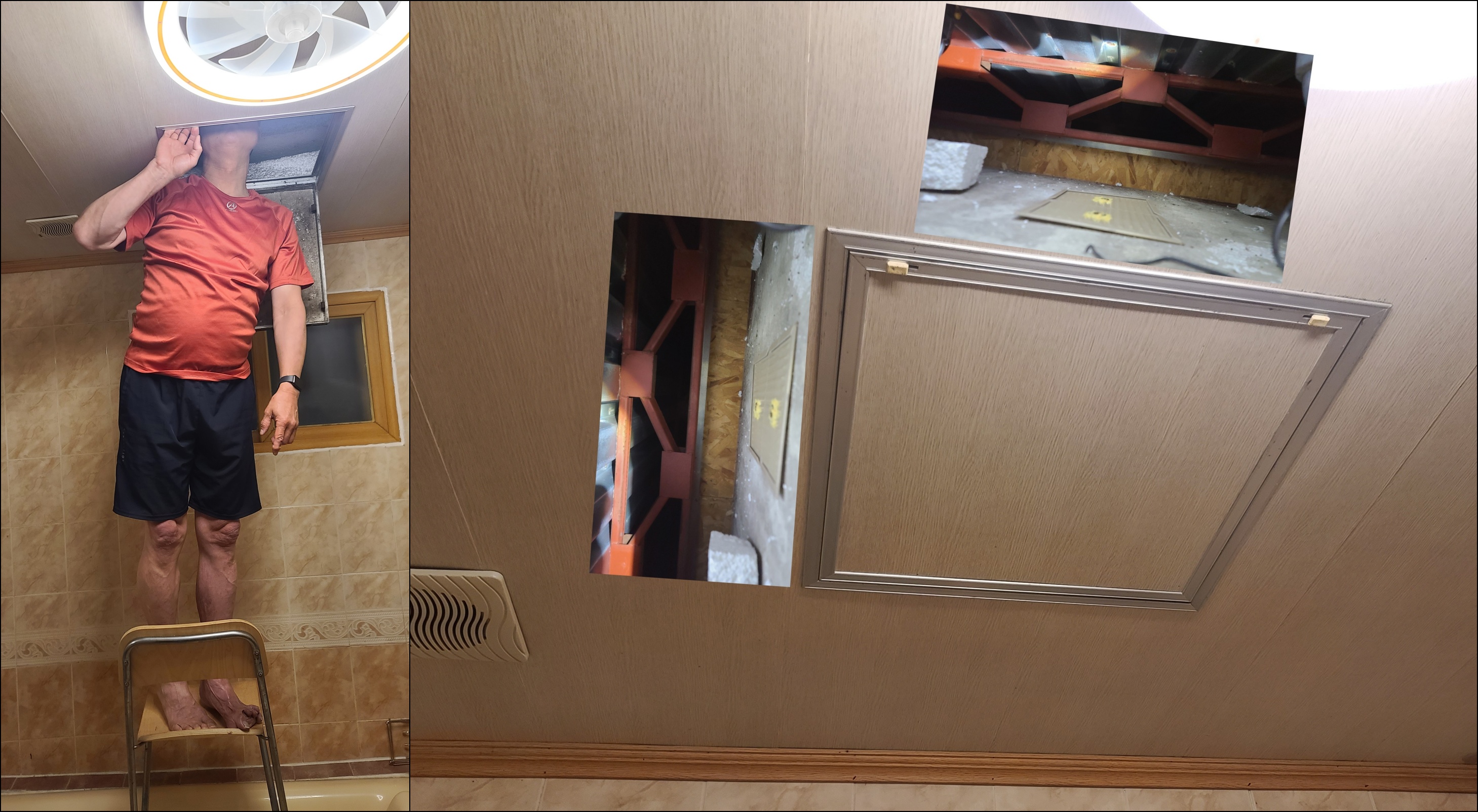 교체 후 욕실 씰링팬 라이트가 안 켜지는 문제 발견. 고민하여 씰링팬을 분해 해 보다가 전원선이 쑥 뻐졌다. 난감... 전원선에 홀더를 끼우고 압착기로 압착한 후 전선 연장소켓 너무 길어서 잘라 내고 끼운 뒤 펜치로 압착했다. 다시 켜니 켜지네? 추측으로는 팬등의 안정기가 지난 불량스위치 때문에 부하가 걸려 잠시 멈췄다가 전선 단선 후 재연결 하여 리셋된 게 아닌가..