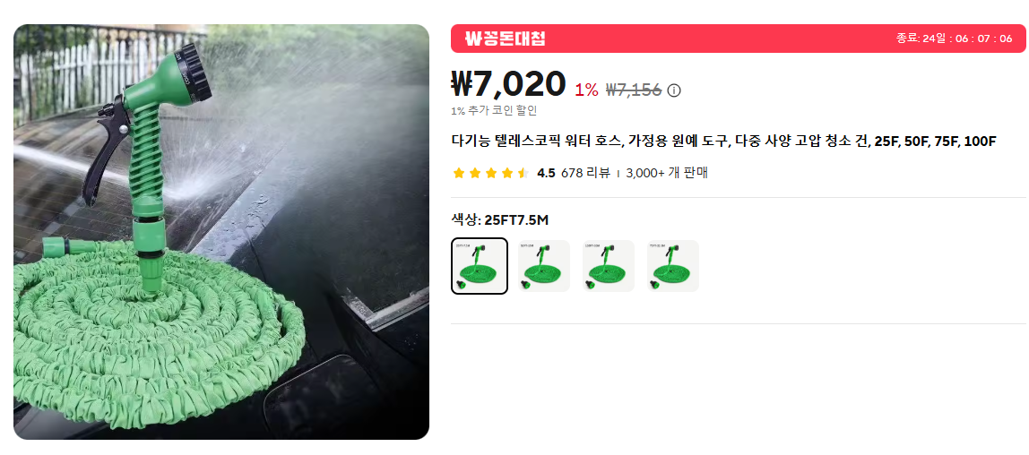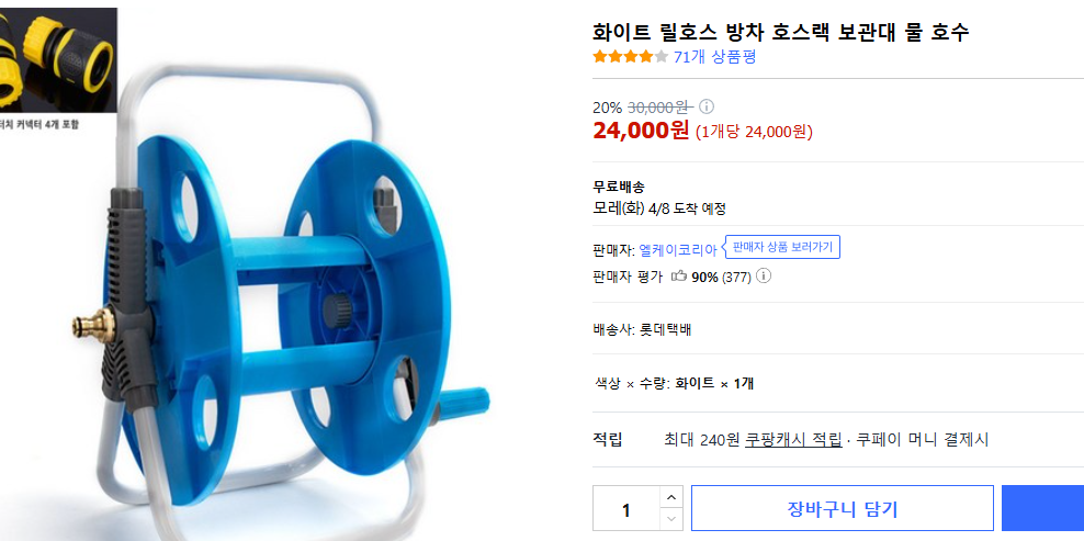 30m 호스는 24년 6월 쿠팡에서 인랩스 양수기 (펌프) 구입시에 샀던 제품.