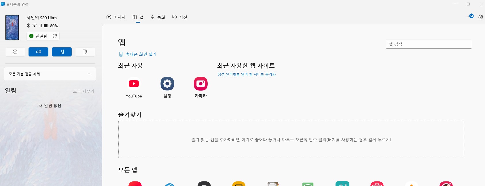 1/31 윈도우즈와 폰 연결 문제. '휴대폰과 연결' 앱 작동 안되는 문제 해결.