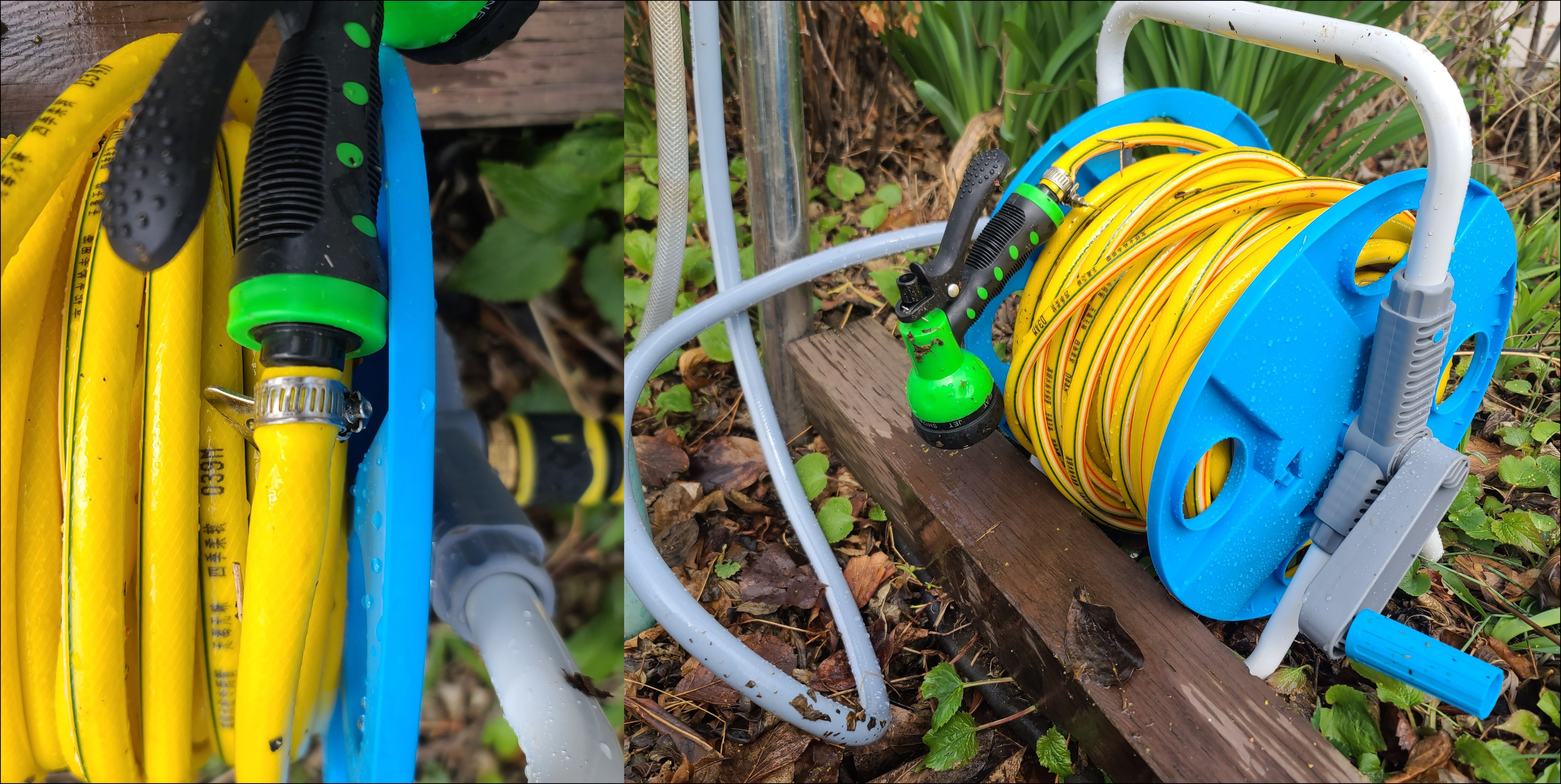 마당에 40m 릴 호스를 설치함. 방차 호스랙은 24년 7월 쿠팡에서 구입,