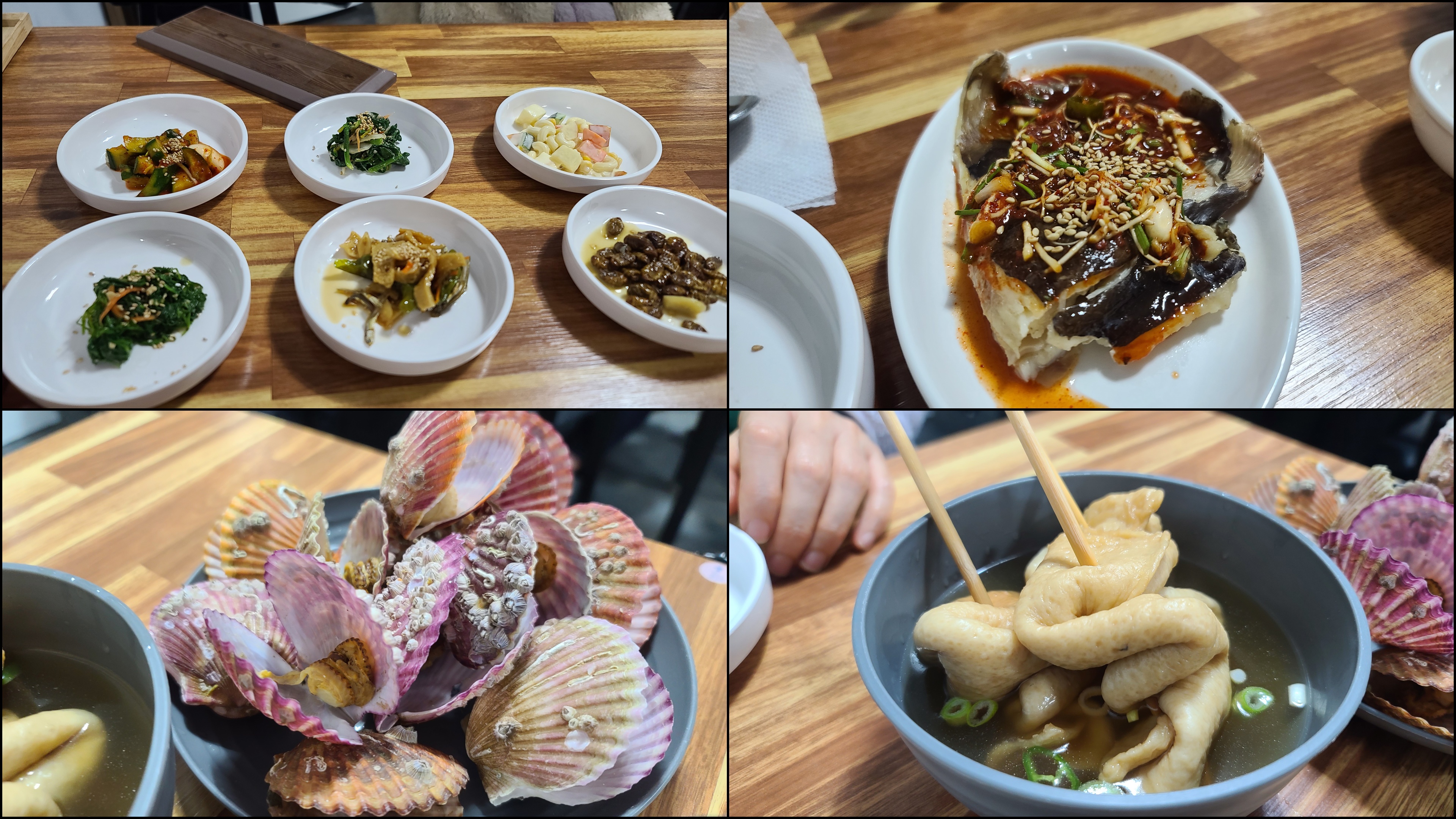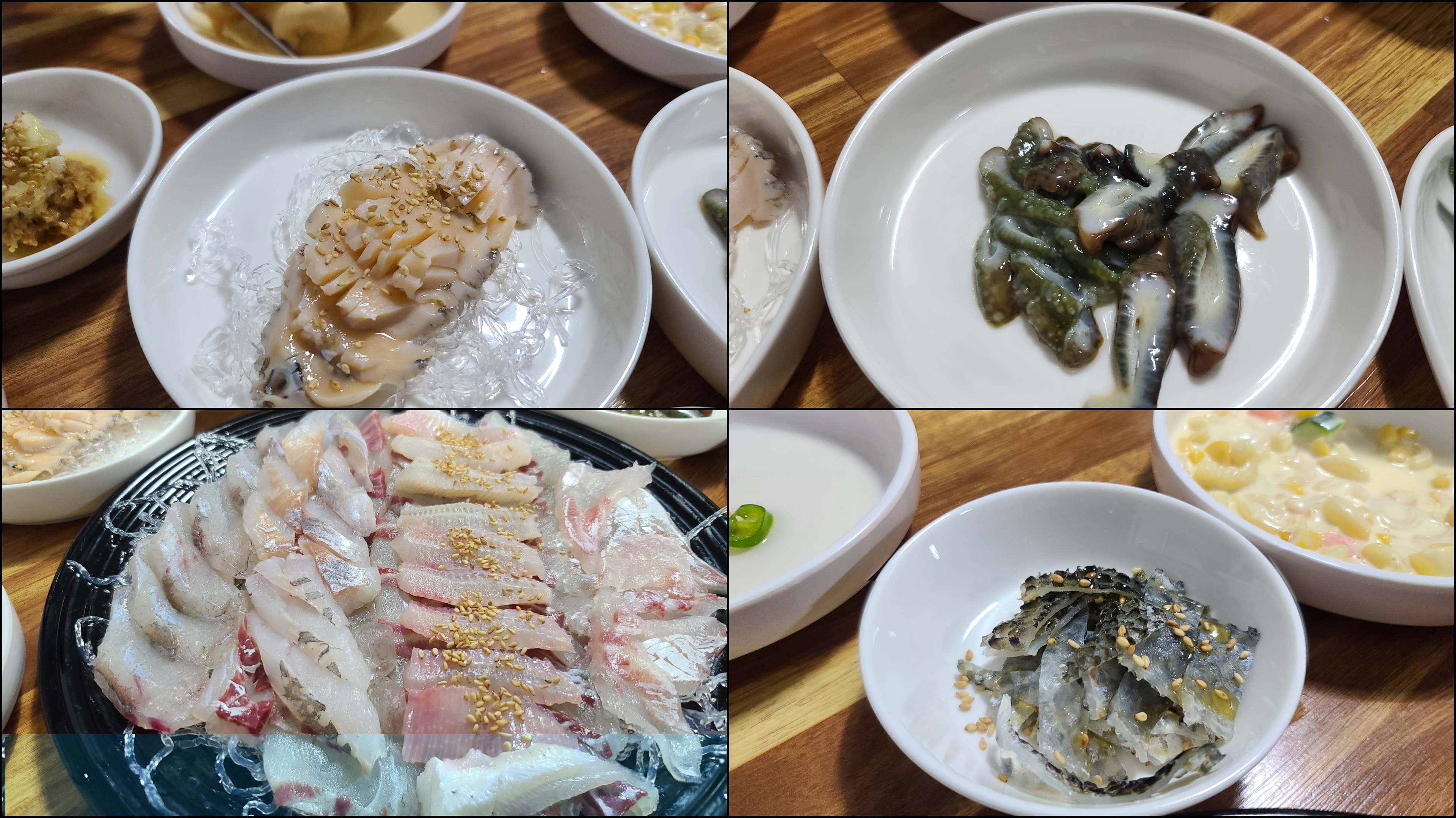 저녁은 해안이와 회튜브가 추천한 회점빵이다. 오늘은 돌돔 우럭 참돔 간재미 등 다소 평범한 구성이다. 기본찬들이 꽤 맛있고 더불어 나오는 해산물도 전복 해삼 가리비 등등 다양했다. 양이 적어 보였지만 막상 회 다 먹고 5천원짜리 푸짐한 매운탕까지 먹었더니 엄청 배부름.