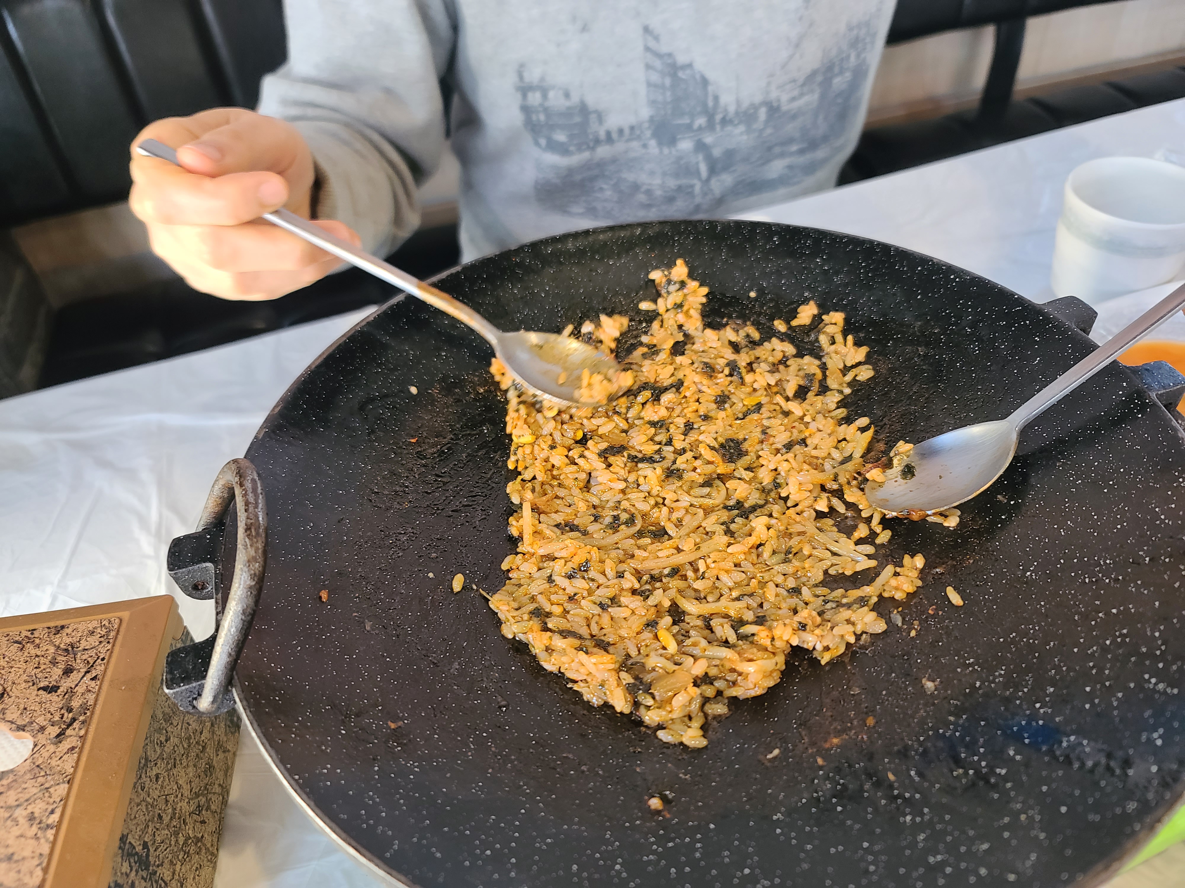 해물찜은 보통 강한 맛의 요린데 이렇게 은근한 맛을 내는 내공에 놀라 배부르지만 볶음밥을 주문해봤다. 못 먹을 것 같았지만 어라? 볶음밥도 굉장하다. 게 눈 감추듯 먹게 된다. 이야.. 나의 원픽 목포 포미아구찜을 능가할 수도 있겠다 생각했고 마눌님은 이미 그곳을 능가했다고 한다.