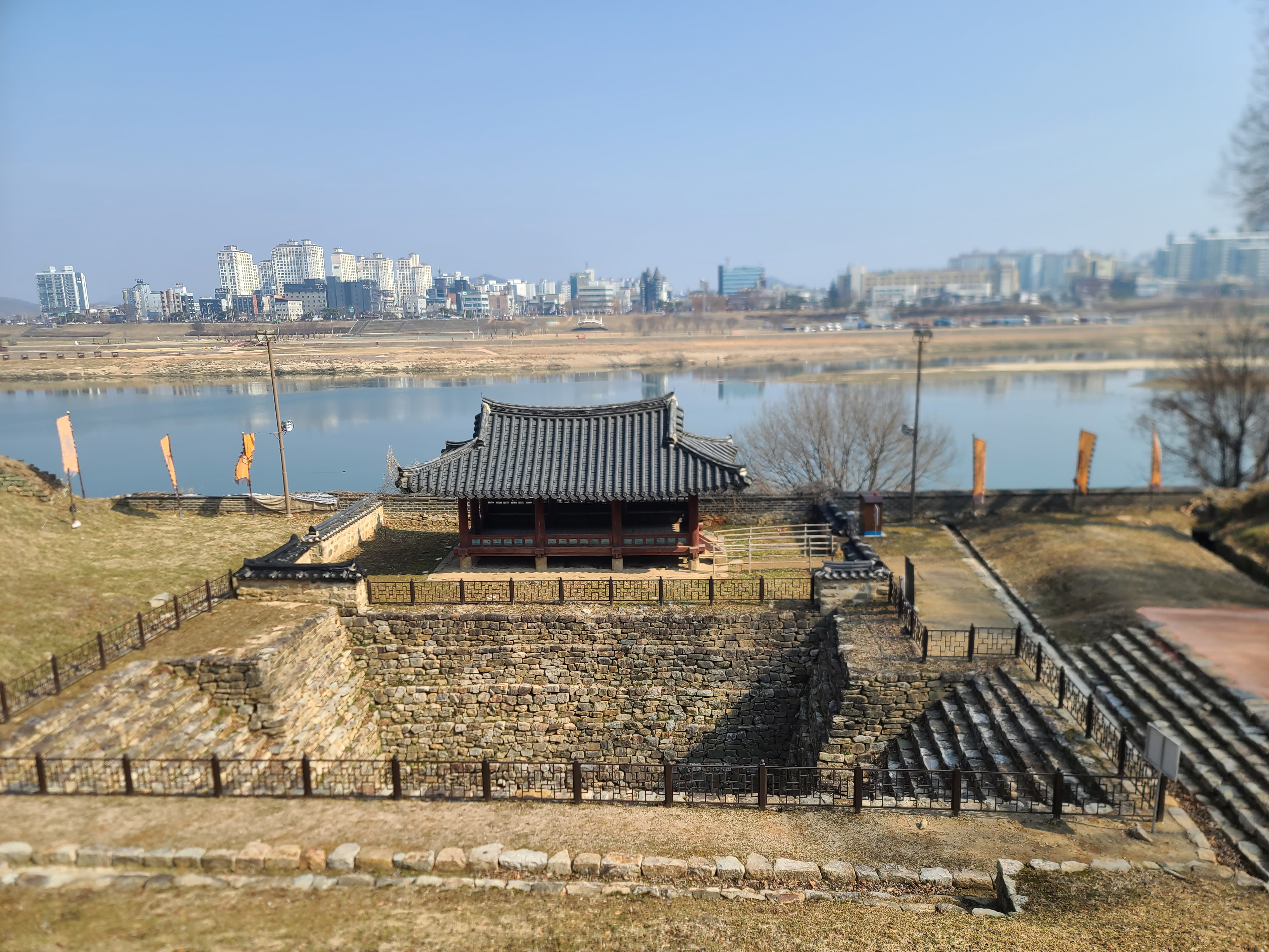 이번에는 서문에서 오른쪽 길 따라 남문 쪽으로 걸었다. 성벽 따라 한바퀴 돈다. 남문 쪽으로도 공산성 접근로가 보이는데 아마 거기는 입장료가 없을 것 같다. 지난번은 20년 4월 이었는데 사진만 있을 뿐 기록이 없다. 서문에서 시작해 남문 북문 성곽 따라 가는 길. 고마나루쪽에는 연지라는 깊은 벽돌축조식 연못이 있고 약수터가 있어서 시원하게 목을 축였다.