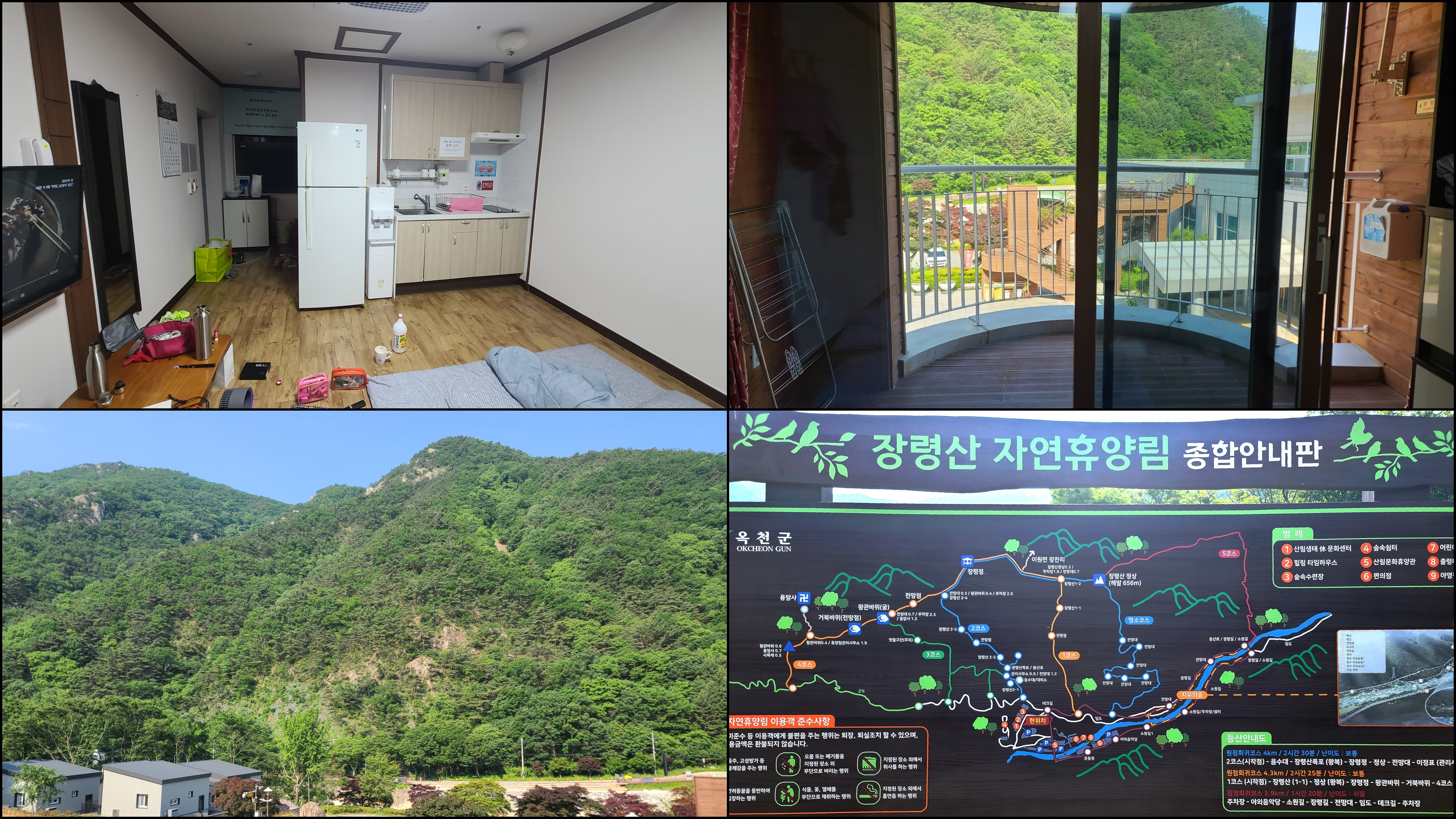 이곳은 옥천군에서 운영한다. 물줄기 따라 위락 시설이 여럿 있고 바로 위에 휴양림이 위치한다. 지난번 수재로 인해 보수 중인 곳이 많다. 입장할 때 5,000원이 들어 있는 옥천 지역 화폐 카드를 준다. 휴양관은 주차장과 분리되어 한 단 위에 있어서 짐을 들고 올라가야 했는데 심지어 휴양관 1층 객실은 실제 2층이고 2층 객실은 3층이다. 무거운 짐을 들고 올라가기가 조금 힘들긴 했다.
