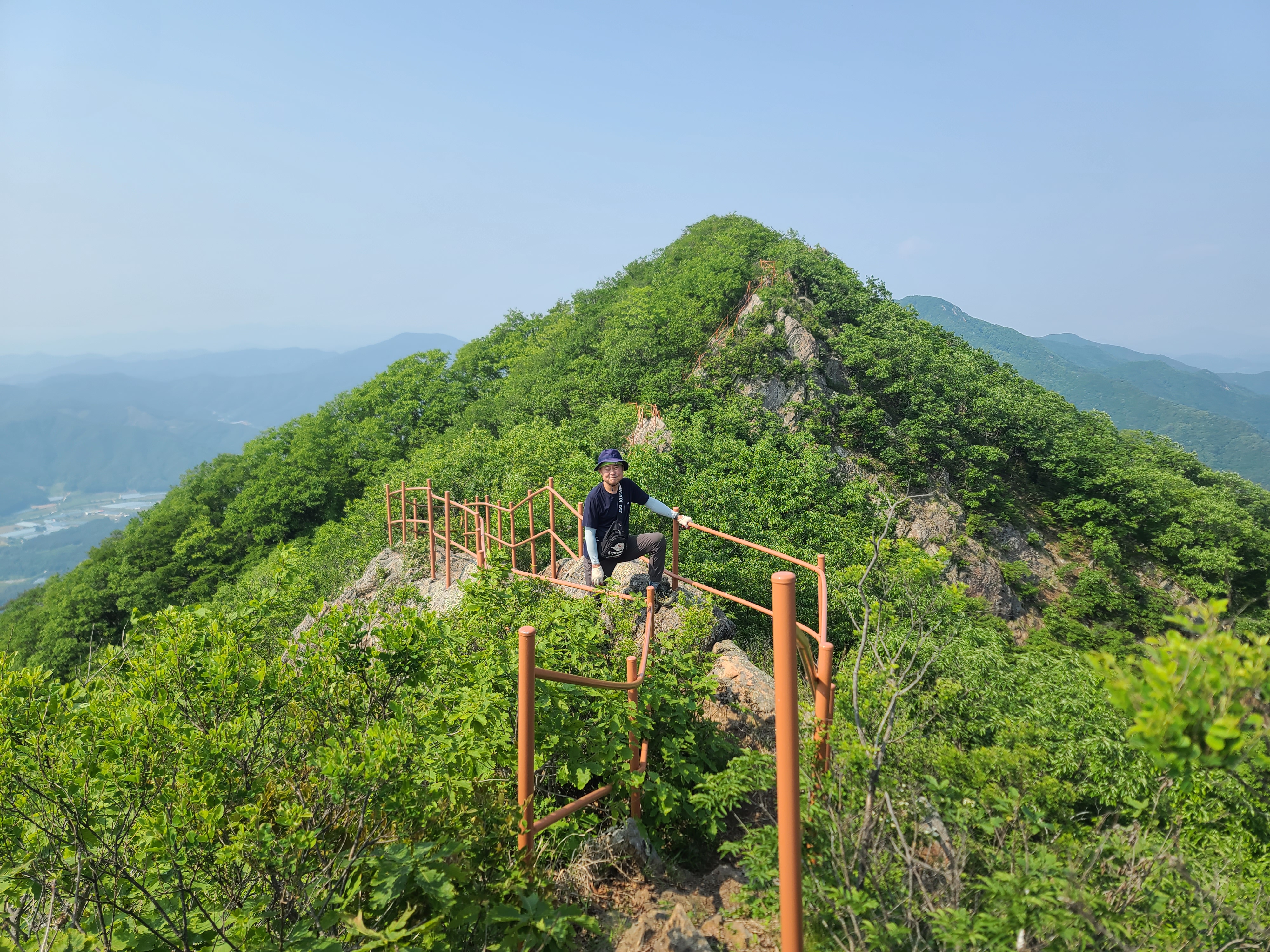다시 주행봉으로 와서 좀 쉬다가 출발. 450m동안 칼바위 암릉길이 계속 이어지다가 마지막으로 한참 내려갔다 다시 올라가는 암릉길을 마지막으로 암릉 끝. 주행봉에서 30분 걸렸다.
