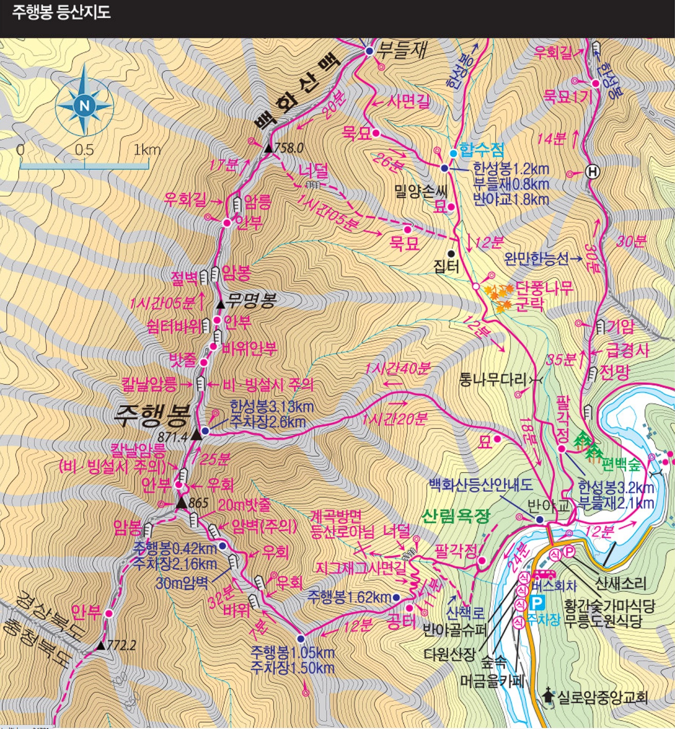 11시 53분 주행봉 최단코스 (2.2km)로 올랐다가 칼바위 잠깐 맛보고 주행봉으로 돌아와 남들 일반적으로 등반하는 경로로 5시 13분 내려왔다. 총 소요 시간 5시간 20분. 발바닥이 무척 아프고 다리가 후들거린다. 화장실에서 세수하고 나니 조금 정신이 드네. (내려올 때 나도 모르게 무리했는지 왼 날개죽지에 담이 걸렸고 31일까지 뻐근하다)