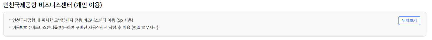 인천국제공항 비즈니스센터 신분증(여권 등) 확인 후 이용(‘세금포인트 사용신청서’ 작성)