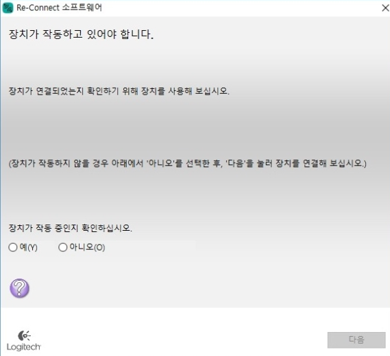 ▼ 아래 화면이 나오면 작동시켜 보고 안되면 '다음' 버튼을 누르면 ▲ 위의 화면으로 돌아가서 다시 시도한다.