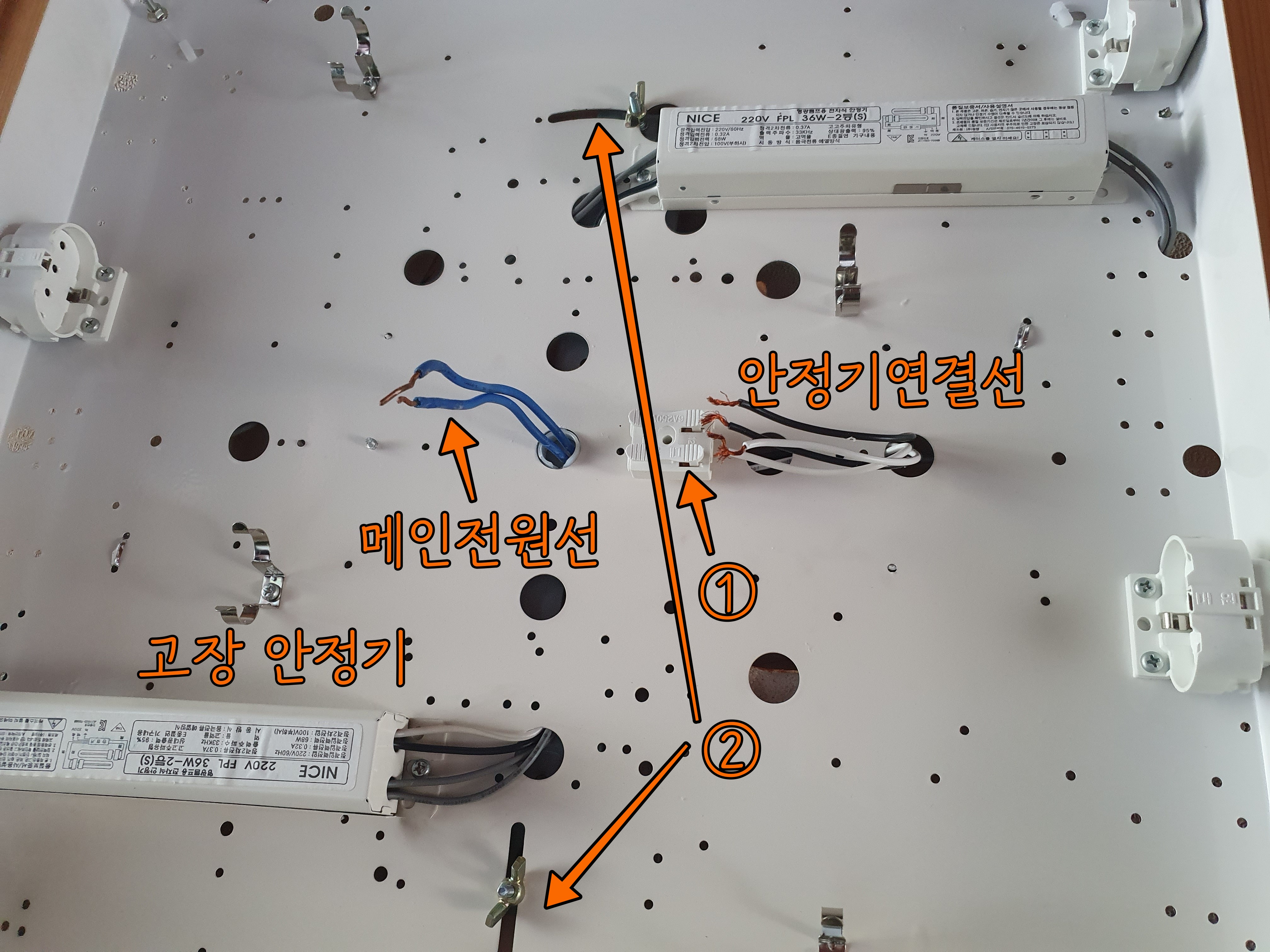 2. 고장난 안정기와 연결된 소켓을 분리.