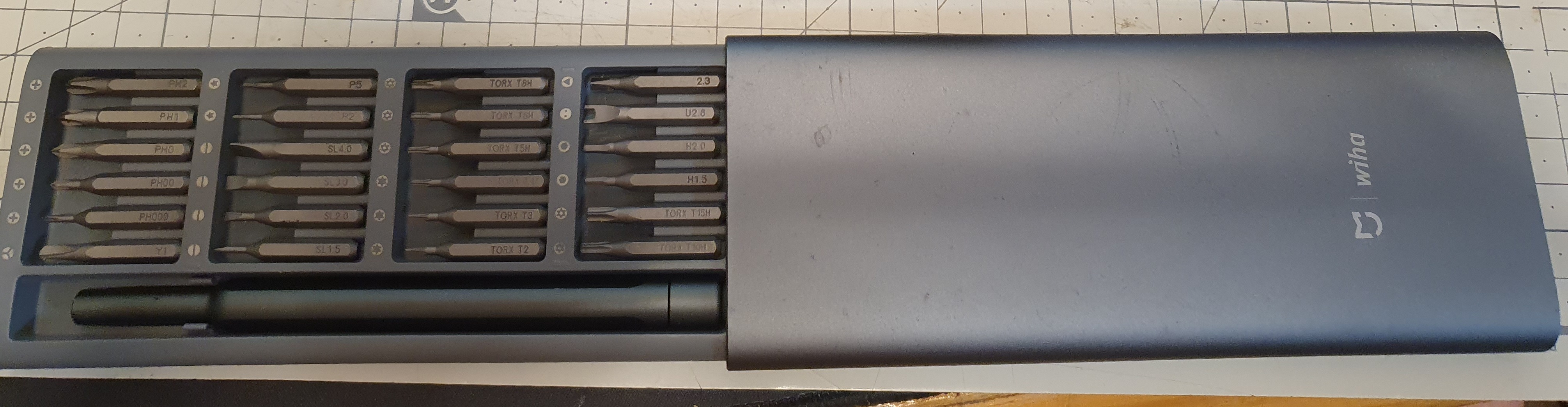나사를 돌리는 데는 WHIA의 다양한 비트모음이 유용했다. 독특한 비트를 많이 준비해 둔 세트다.