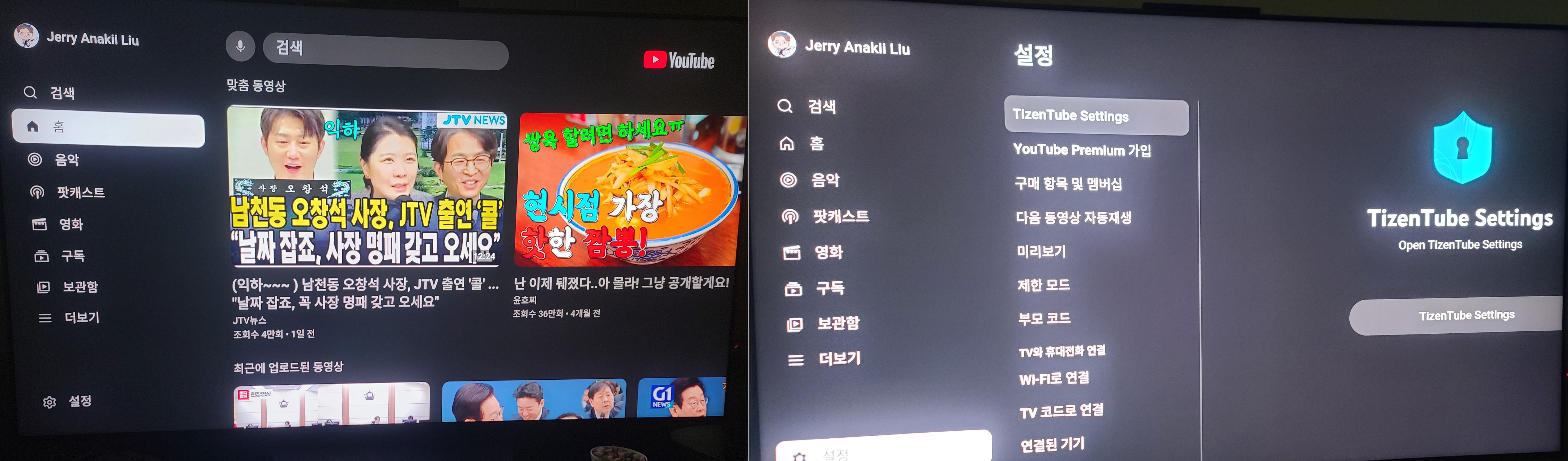 가. TizenTubeCobalt라는 앱이 있다. 타이젠에서 사용하는 유튜브 개조 방법을 개발자가 스스로 안드로이드 TV로 포팅한 것이라 한다. 다운로드는 공식깃헙 유튜브 로그인도 가능하고 실행하면 유튜브 앱과 구별할 수 없다. apk이기 때문에 cobalt_arm.apk 파일을 다운로드 받아 USB등으로 TV에 복사하여 구글TV의 파일관리자 등을 사용해 설치한다.