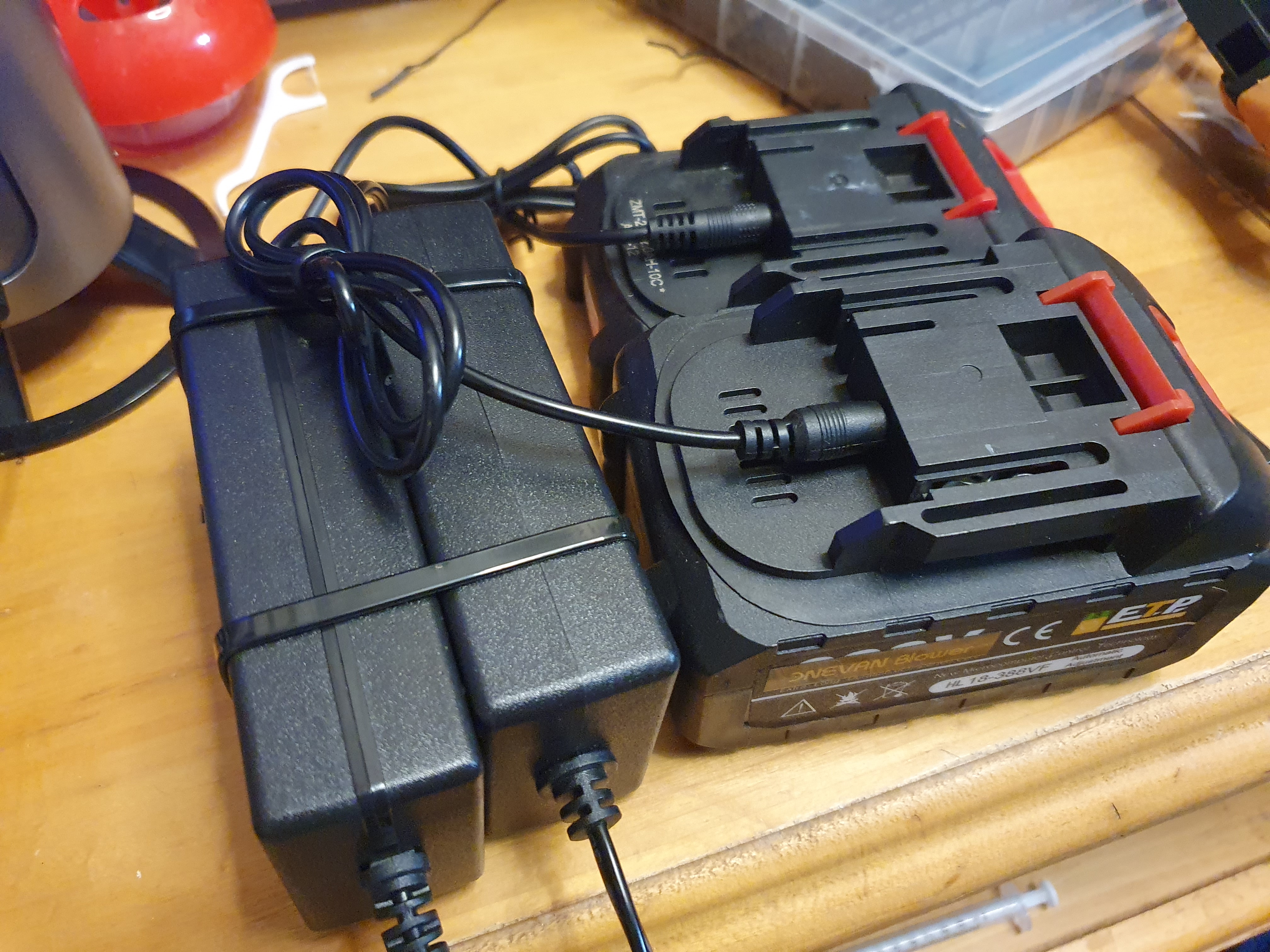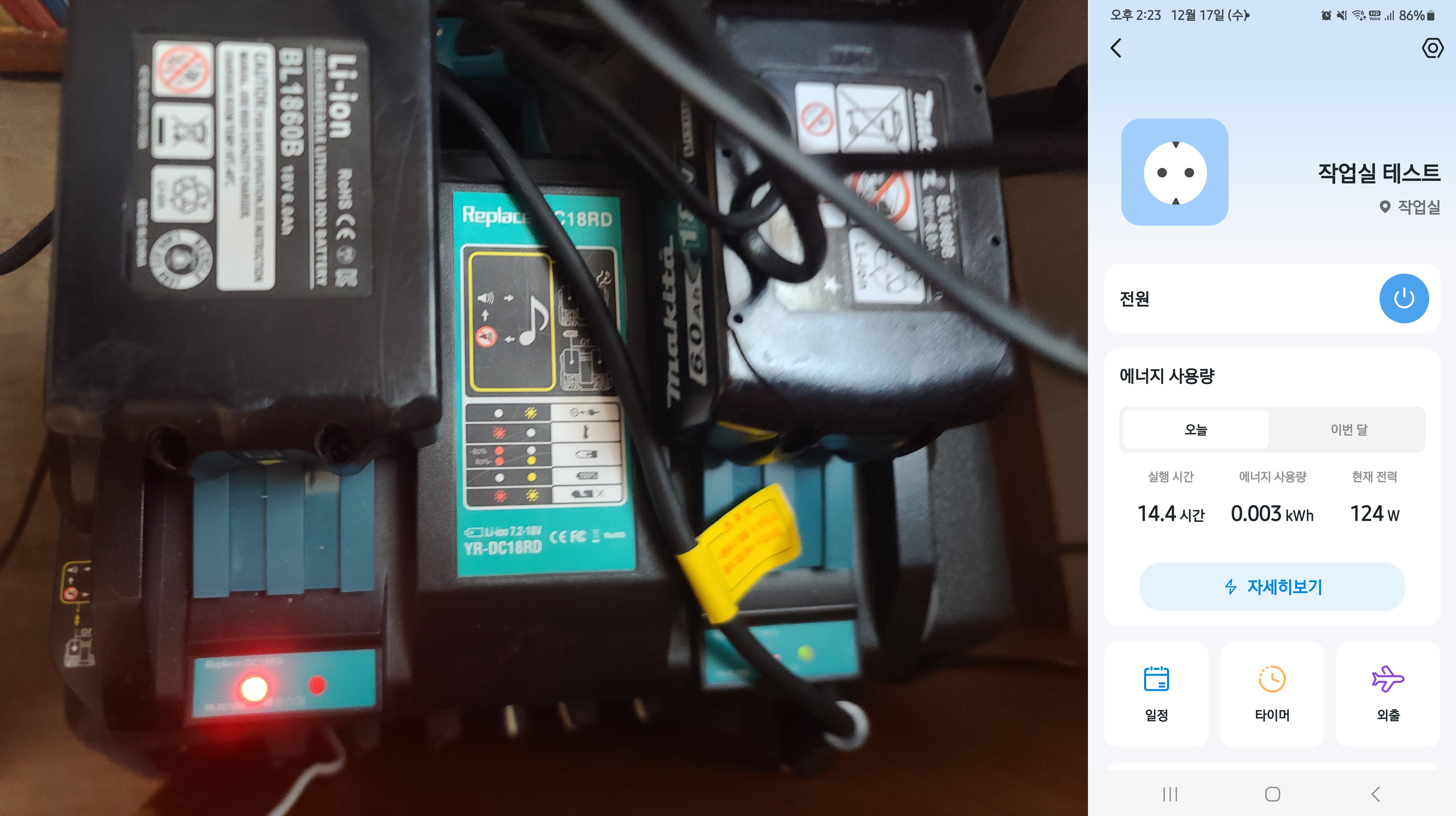 22년 7월 구입한 마끼다 호환배터리와 급속 충전기, 이 충전기 대단하다. 무려 124W로 충전되고 있다.