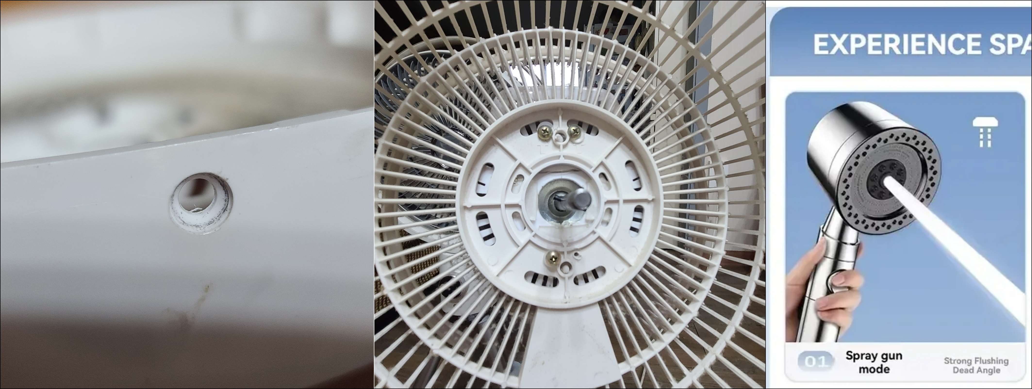 ③ 알리에서 구입한 샤워헤드, 강력한 물줄기로 먼지 터는 데 효과적이었다.