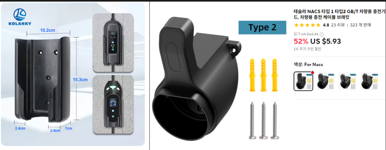 충전기 본체 홀더와 케이블 홀더를 알리에서 찾았다. 이걸 이용해 상시로 편하게 충전하는 구조를 만드려고 한다.