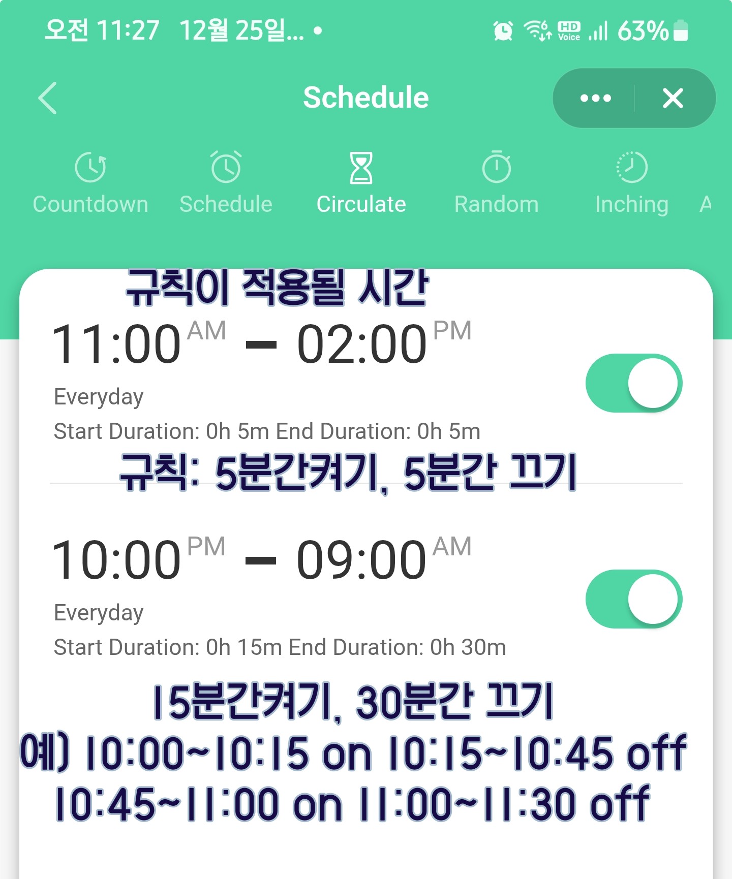 12/25(목) Tuya 투야 스마트플러그 Circulate 기능 설정 (일정 인터벌 두고 on/off반복)