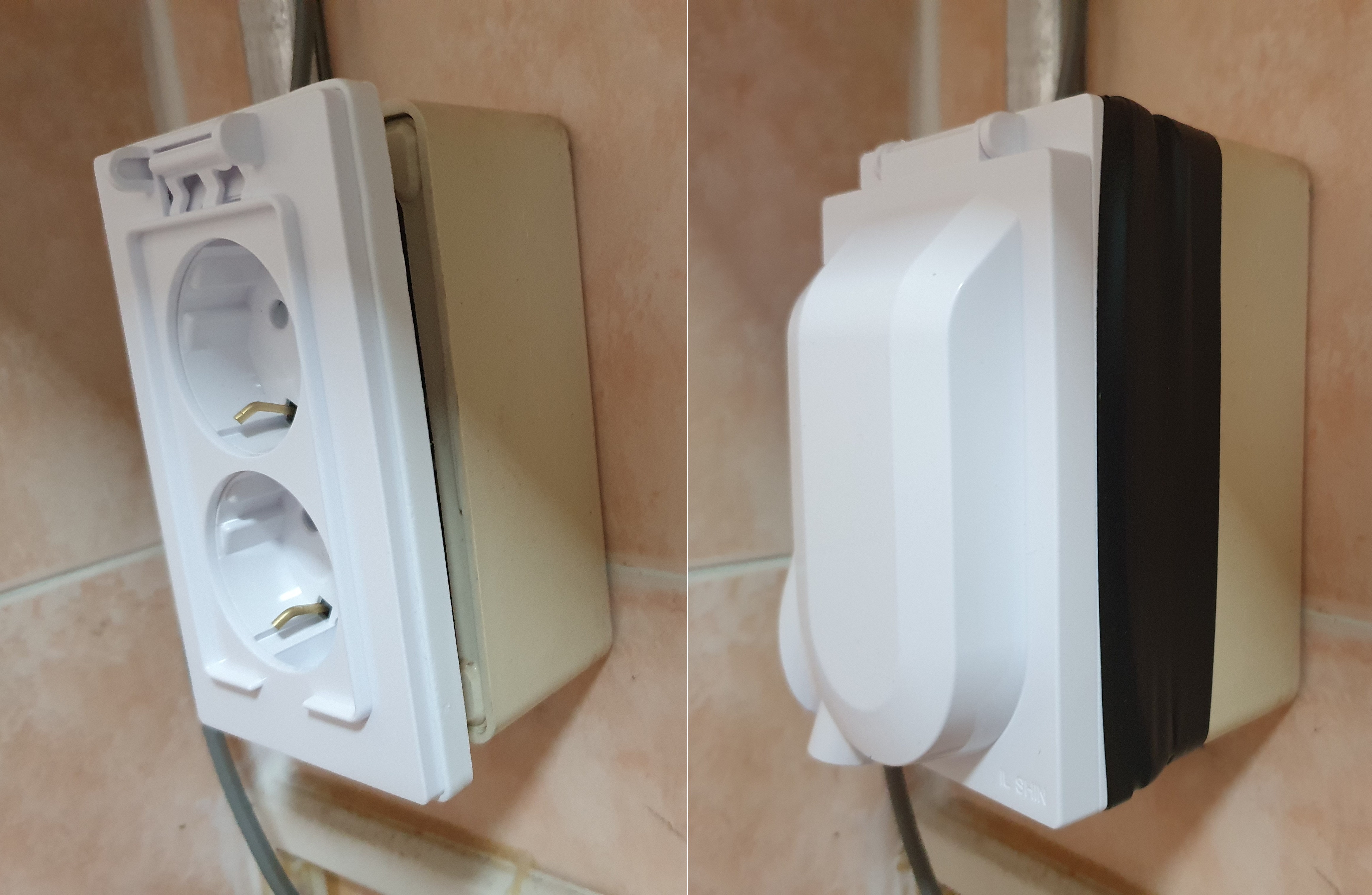 욕실 콘센트는 15A 250V였다. 2016년 설치한 사우나기는 3.6kW 제품. 최대부하를 견디다 못한 콘센트가 열로 눌어붙고 있었다. 이러면 화재우려가 있어서 콘센트를 16A로 교체했는데 하우징과 새 콘센트 간 유격이 있어서 전기테이프로 감아두었다. 물만 안 튀면 되니 괜찮겠지, 다행히 쿠팡에서 추가로 주문했던 방우콘센트와 덮개가 제대로 쓰였다.