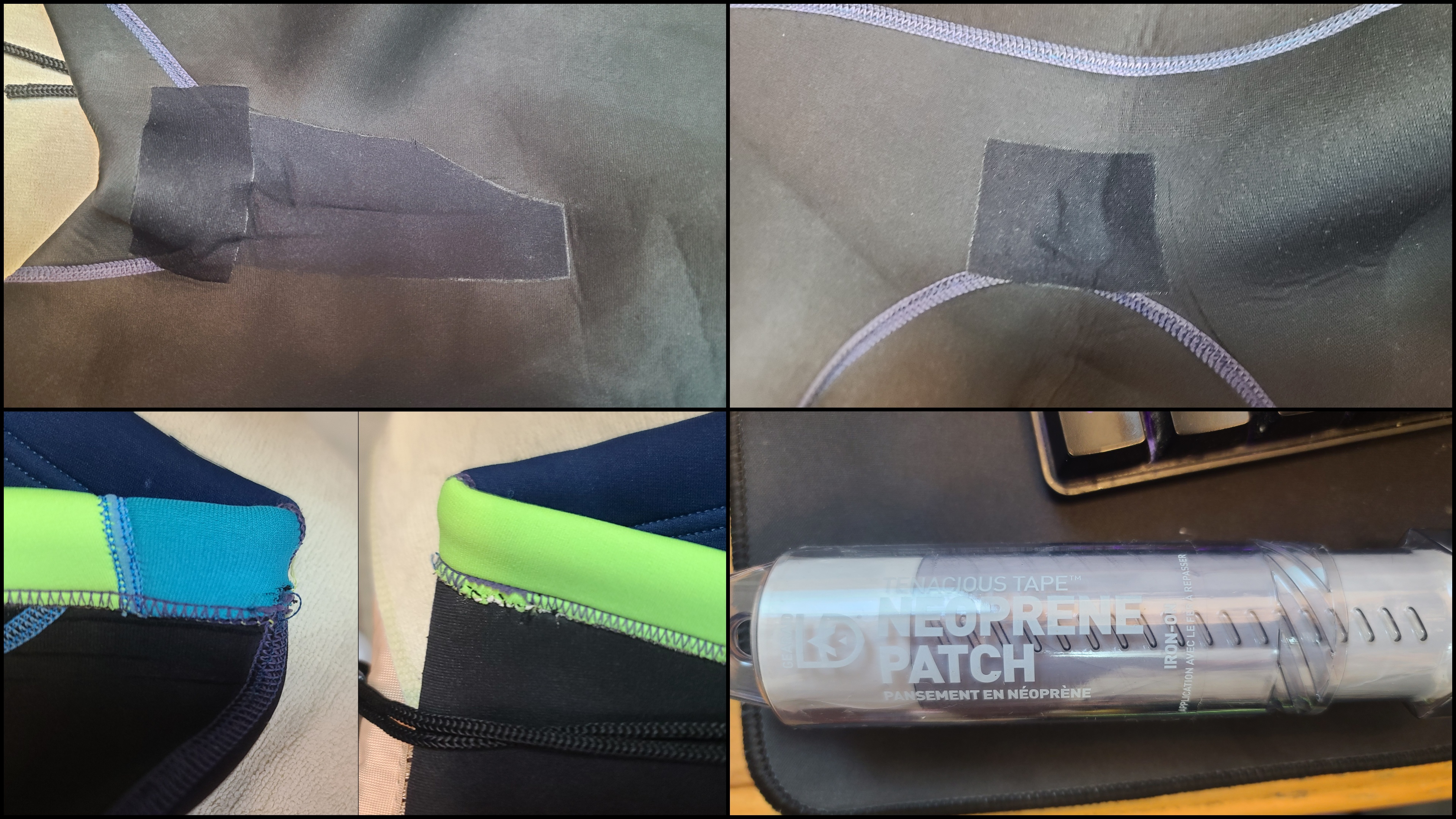 25/3/10 쿠팡 에서 산 부력수영복. 4개월만에 엉덩이부분이 해지고 작은 구멍도 났다. 올이 풀리기 시작한 건 한 3개월 전 부터. 남이 있는 티네시어스 네오프렌 패치를 써서 일단 수리.