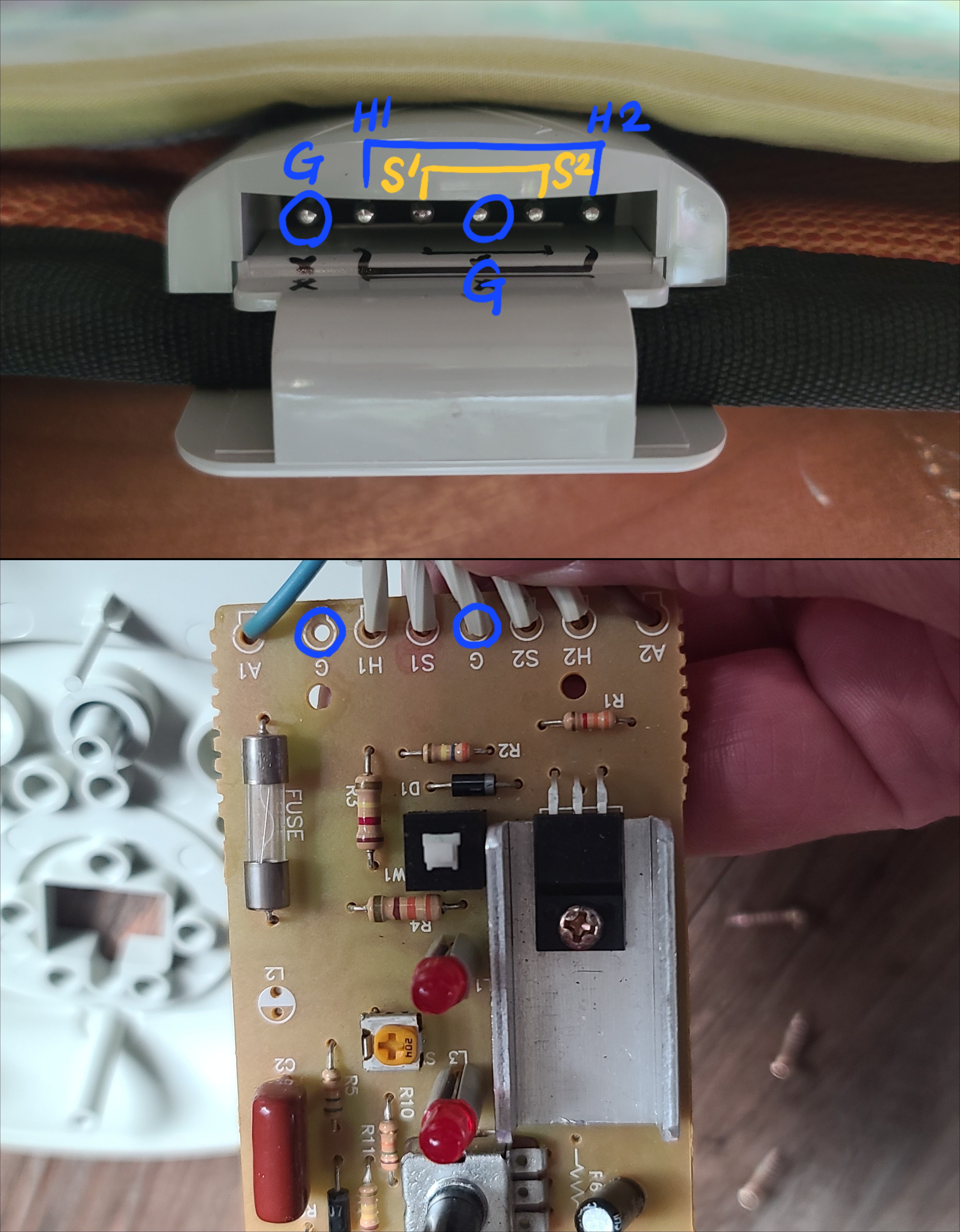 1. 매트 단선 점검 : 정상. (테스터 저항 모드에 놓고 아래 h1-h2 S1-S2 연결하면 저항값 나옴. G는 연결안됨.