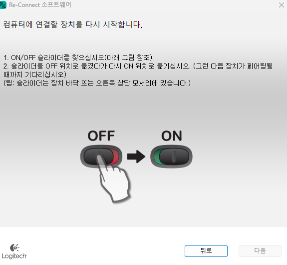 일단 수신기 인식 후 마우스나 키보드의 전원을 껏다 켜면 작동시켜보라는 메세지가 나오는데 작동이 안되면 화면 지시에 따라 다음 버튼을 누르고 기기 전원을 다시 껏다 켜면 다른 채널로 인식 시도한다. 내 경우엔 처음 3회는 인식 불가, 다음 몇 차례는 마우스는 움직이지만 클릭 불가였다가 7번째 마우스 클릭이 가능해졌다. 키보드는 자동으로 따라왔고.