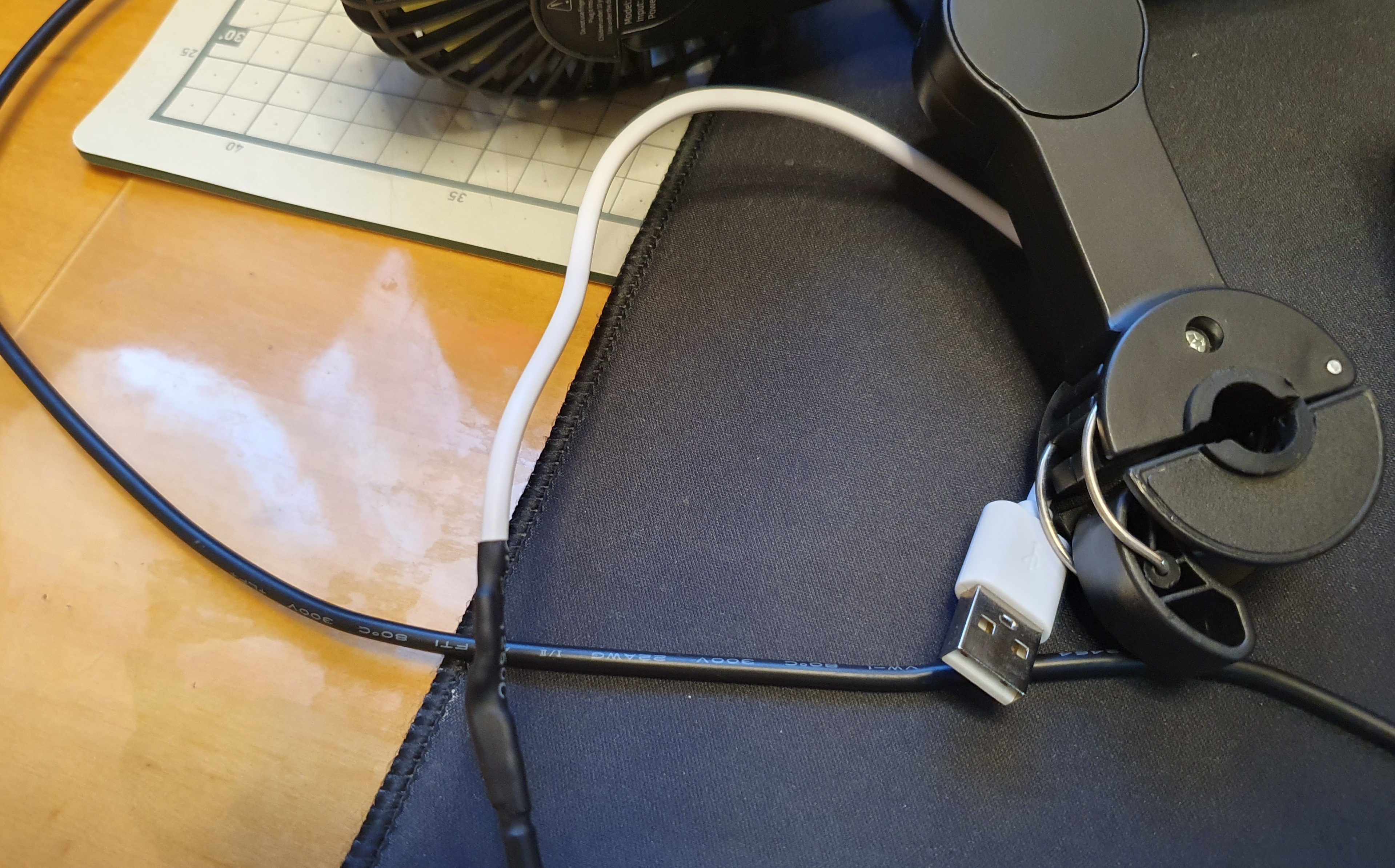 전원 단자 부분이 끊어졌다. 집에 있는 폐 USB선의 단자 부분을 잘라서 이어 보았다.