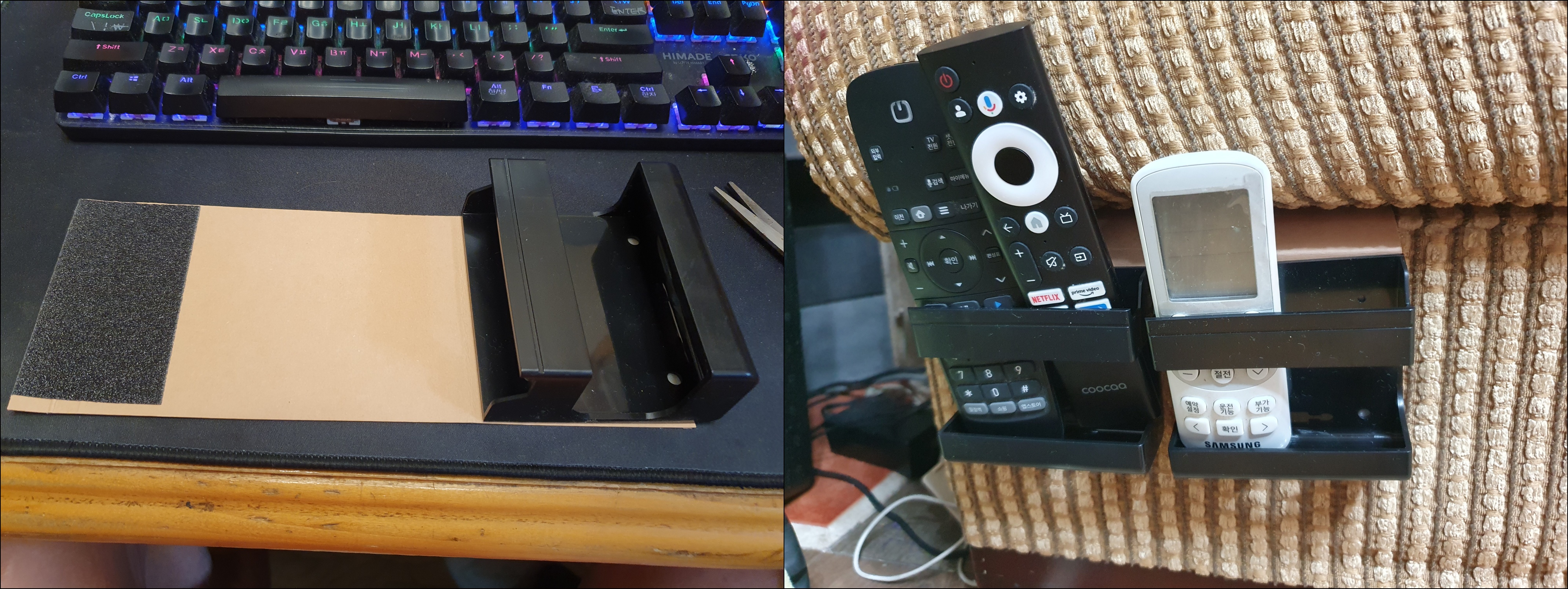 알리에서 구입한 리모컨보관함과 두꺼운 종이와 계단 논슬립 테이프를 이용했다. 소파 사이에 끼우니 딱 맞고 밀려 나오지도 않는다.