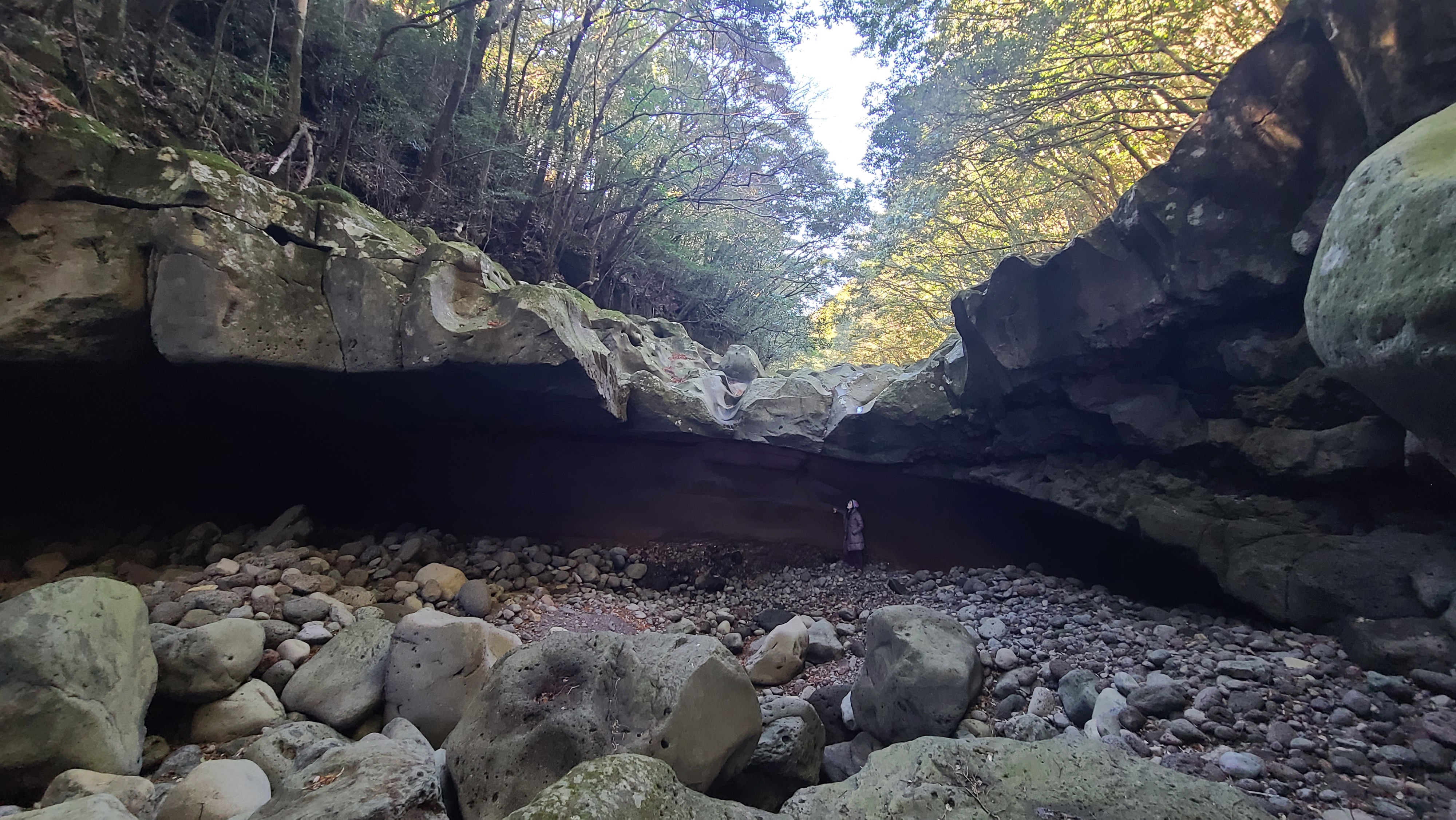 영천 진입로를 못찾겠는데 원본 블로그에 철탑길이라는 용어가 있어서 살피니 줄타기 수련을 위해 설치한 철탑들이 있긴 하다. 경아가 더 가 보재서 훈련장끝에서 이어지는 오솔길 발견, 조금만 나아가니 과연 . 계곡 내려가는 로프가 있어서 내려갔다. 큰 바위들이 어지러이 놓인 위험한 계곡길 길을 300여미터 정도 걸어갔더니 멀리 큰 바위가 보인다. 저기 까지만 가자 해서 갔는데 예전에 고지천에서 봤던 꽤 큰 소와 절벽이 나타난다. 여기서부터는 그냥 갈 수 없기에 로프가 있었는데 로프들이 낡아서 떨어지기 직전이다.