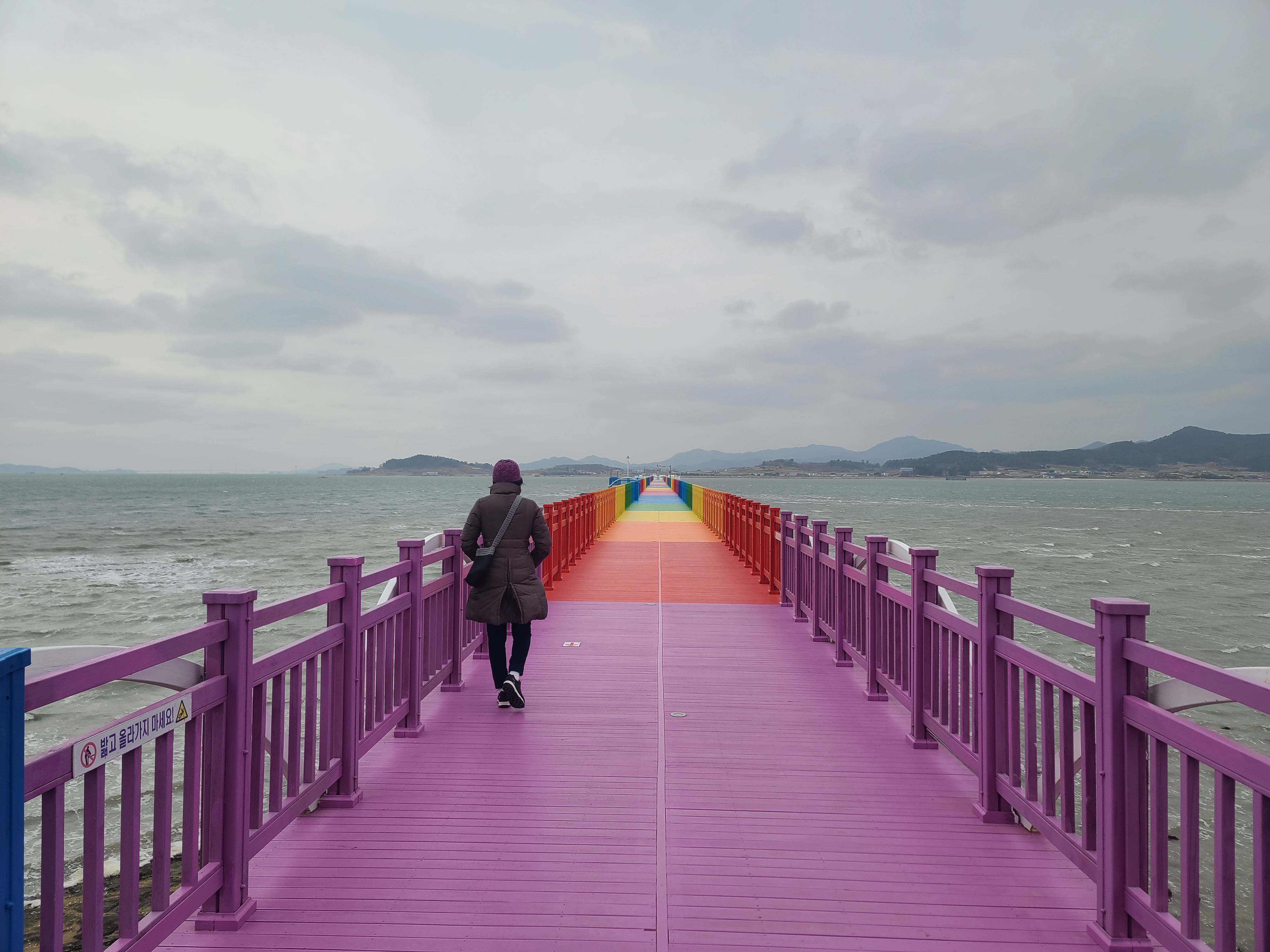 돌머리해수욕장은 해수풀장이 잘 마련되어 있고 무지개 세 개의 다리가 해안가에서 바다를 향해 있다. 춥고 바람이 많이 불어 인적 은 없었다.