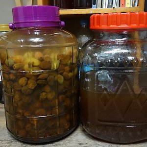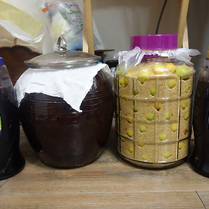 개복숭아4 6/21 매실 담금, 보리수, 오디 담금, 탈춤복 구입 2017.6.19 우리 집 매실 매실을 땄다. 이번엔 꽤 부실하다. 마른것, 덜익은 것 등등. 6L들이 병에 설탕부어 담갔다. 2017.6.10 아버지에게서 매실 아버지가 매실 얻은 것 있으시다고 담금주 부어 설탕 부어 담가두셨다. 대략 매실량 2kg 정도. 술 부으니 5L. 6.20 오디, 보리수 담금 우리 집 오디 모조리 따 보니 3kg정도 되네. 설탕 넣어 재웠다. 언니네 보리수, 잔뜩 따 오니 역시 3.5kg 정도. 설탕 넣어 재웠다. 보리수는 엑기스 내린 뒤 와인화 시킬 예정 ▲ 우리집 오디, 언니네 보리수, 오디 재움. 6/26 탈춤복구입 한밭국악사에서 구입했다. 모든 옷은 수공으로 만들므로 어떤색이든 가능하지만 너무 다른 색은 곤란하다고 말씀하신다. 맞는 이야기다. 모두 같은 색으로 하면 좋.. LOG/14~18(푸른솔) 2017. 6. 29. 2016년의 과실액,과실주.(매실,개복숭아,오디,블랙베리) 2017/3/30 매실, 개복숭아, 석류, 오미자 등등 내리다 생협황매실을 담은 유리병, 향이 엄청나지만 맛은 달지 않고 시다. 수분이 많아서겠지. 강화장터에서 산 개복숭아로 만든 청은 무척 달다. 매실과 설탕량 비슷한데 이리도 결과가 다르다. 둘을 섞어 2L병에 세 개 담았다. 원가 대비 나오는 양이 너무나 적다. 2016/9/11~23일 동안 생협주문 생오미자와 라구요님께 받은 생오미자로 청을 내렸다. 라구요님 생 오미자가 좀 더 붉다. 작년 10/22 담은 생협석류청 내렸다. 향긋하다. 1.6KG에 설탕은 0.5KG 분량은 1리터 정도. 7/2 매실,개복숭아,오디 엑기스(엑스트랙트)는 농축액이라는 뜻이고 고아서 수분을 날린 것이니 매실 엑기스는 아니겠고, 발효액이라 하는 게 맞겠는데. 발효액이라기엔.. HOWTO/각종술, 향수 2017. 3. 31. 2014 매실과 개복숭아 효소 ~ 2015 개복숭아/매실주 2015/9/17 침출주 (개복숭아/매실주) 작년 11월 5일 담가 올해 5/25일 떠냈던 황매실+매실+개복숭아에 다시 소주를 넣은 2차 침출주, 오늘 걸렀다. 4개월짜리군.맛있다. 소주향 잘 안나고 짙은 과일향. 3차 침출을 시켜야하나. 아래 왼쪽이 1차 침출주, 오른쪽이 2차. 2015/5/25 과실주와 효소 (개복숭아/매실주) 작년 11월 5일 담갔던 황매실+매실+개복숭아 주. 오늘 떠 봤다. 色 됴코, 味 됴코, 香 진하니 명품이로세 보라 뚜껑 술을 거르니 4L쯤 나온다. 진한 리큐르다. 토닉을 섞어 칵테일로 해야 할 것 같다.2012년 수련원에서 함께 담근 매실엑기스를 2013년 고량주에 담았던 술도 남아 있어서 병입했다. 술로만 2년 숙성.황매실과 개복숭아 효소를 소분하여 1.5L 페트에 담았.. LOG/영농일기 2015. 9. 17. 6/30~7/6 개복숭아, 보리수, 황매실효소 6/29일 보리수, 황매실 효소 시범 현숙언니네서 따온 보리수, 잘 씻고 꼭지를 따서 마스코바도를 넣어 시작했다. 채아(효민)네 땅에 떨어진 황매실, 몇 개 주워 마스코바도 넣어 시작했다. 7/1~3일 보리수, 살구 효소 보리수와 황매실 효소 병을 열어 보았다. 보리수는 코를 찌르는 향, 황매실은 향긋한 향. 설탕에 향이 배었다. 7/3일 개복숭아 효소 담그다. 개복숭아 (현숙언니네서 가져옴, 5kg) , 설탕 (태국산 유기농 정제설탕) 5kg10L 유리병을 세계로마트에서 사왔는데 병에 꽉 차지 않는다. 7/4일 황매실과 개복숭아 혼합. 채아네 황매실을 좀 더 얻어 왔다. 향긋하던 황매실효소 병 열어 개복숭아에 혼합하고 얻어온 황매실을 씻어 꼭지 따서 합치고 나니 병에 좀 차네. 7/6일 매실, 황매실+.. LOG/영농일기 2014. 7. 6. 이전 1 다음