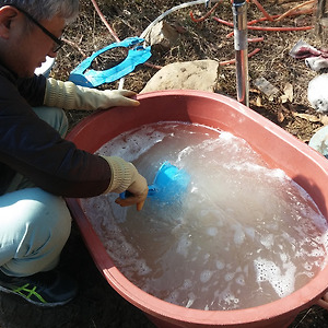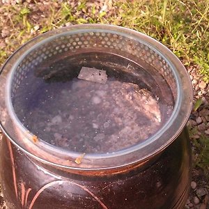 된장4 3/1 간장/된장 담기 (진행중) 3/1 간장/된장 담기 올 초, 언니,한스형,성락형이 모여 메주를 성형하고 김정택 목사님댁서 겨울을 난 뒤, 얼마 전에 가져와 언니집에서 띄웠다. 3/1일인 오늘은 말날. 다들 된장을 담그는 날이다. 메주는 언니네 황토방에서 잘 떴다 한다. 1) 먼저, 메주를 솔로 씻어 말린다. 메주에 붙은 먼지를 떨어내는 일. 너무 심하게 떨어내면 맛있는 발효균인 곰팡이도 떨어져요. 손이 넘넘 시리다. 2) 소금물을 3/4 다라 정도 만들어야 한다. 농도는 계란 동동 떠서 500원짜리 크기가 될 정도. 소금이 13kg쯤 들어갔다. 3) 소금물의 불순물을 가라앉히는데 두어 시간 기다린다. 4) 독에 메주와 소금물 넣고 숯 두어 덩이와 고추 서너개를 담고 얇고 낭창한 나뭇가지들로 메주가 올라 오지 못하게 막았다. 일단 완료. LOG/산마을학부모영농단 2016. 3. 11. 2015년 된장담기 (2/23~4/) 기록 중 2015/2/23 메주와 소금물 준비 메주준비 콩세알에 콩 30kg주고 메주 25개 받았다. 메주 하나는 700g정도니까 대략 전체 18kg. 독 세우기 언니집 뒷마당에 파레트 놓고, 세말 짜리 독을 잘 씻어 그 위에 두었다. 소금물 담기 다라에 소금 붓고 고무장갑 낀 손으로 살살 녹이며 달걀을 넣어 500원 크기만큼 솟아오른 것 확인하고 독에 붓는다. 소금 다 녹이지 않아도 된다. (라고 윤화엄마 이례교님이 말했다) 이 과정을 몇 번 하며 독에 소금물을 담았다. 메주 담그기 (확인해야 함. 기록 중) 그담주, 소금물을 메주를 독에 담고 소금물을 붓는다. 숯을 넣고 고추나 엄나무가지를 넣어 살균한다. 이 상태로 두 달 묵히자. 2015/4/4 간장, 된장 분리하기 메주를 꺼내고 간장을 거른다. 플라스틱 .. LOG/산마을학부모영농단 2015. 5. 9. 수련원 영농지 둘러보기. 참가윤배형, 선두형, 교장샘, 현숙언니, 제열과 경아 작업로그 * 너무 무성한 고구마순을 정리했다 오늘은! 된장독지난해 메주만들고 올 초 간장을 내렸던 된장독. 그늘에 오래 뒀더니 곰팡이 가득입니다. 하얀곰팡이 좋아~ 검은 곰팡이 나빠~ 라네요. 하지만 뚜껑을 열고 곰팡이를 들춰 장맛을 보니 장맛은 괜찮습니다. 빛을 받도록 양지바른 곳에 두고 뚜껑을 덮었습니다.고구마순수련원 영농지 고구마가 엄청 무성합니다. 고라니가 일부 침범해 순을 드셨지만 워낙 왕성한 생명활동이 펼쳐지는 여름이라 별 타격이 없네요. 여전히 무성합니다. 길게 늘어진 순을 정리하는 차원에서 땁니다. 여러 분이 한참 동안 순을 따셨는데 고구마밭은 큰 차이 없군요.콩의 경우도 고라니들이 윗순을 싹둑드셨지만 이젠 꼬투리가 맺히고 있습니다. 이.. LOG/산마을학부모영농단 2012. 9. 16. 2012/02/21 영농단 된장담그기 상세 기록 된장 담그기 전 2/11일 메주 상태입니다. 참가 김기창소장님, 장분남선생님,김현숙님(강화/3학년 주정호), 김애영님(강화/졸업생 정진슬),아나키와 게바라(김포/3학년 류해안) 작업로그 * 음력 1월 30일. 말의 날 (그믐날, 말날, 닭날 담그는 게 좋다고 합니다. 오늘은 그믐 + 말날!) 정월에 담는 것을 정월장이라고 함 * 항아리는 김소장님이 미리 소독해 두심. * 아침에 큰 플라스틱, 양은 다라를 씻고, 천일염을 부어 소금물을 만들어 둠. 다라 하나당 5kg정도. * 4~5시간 후, 작업 속개. 메주를 솔로 잘 털어 내어 항아리에 차곡이 쌓음. * 버드나무 가지들로 메주가 뜨지 않게 함. * 소금물 염도를 다시 맞추어 면포에 걸르면서 항아리에 넣음. 이 때 참숯에 불을 지핌 * 고추, 대추를 띄우.. LOG/산마을학부모영농단 2012. 2. 22. 이전 1 다음